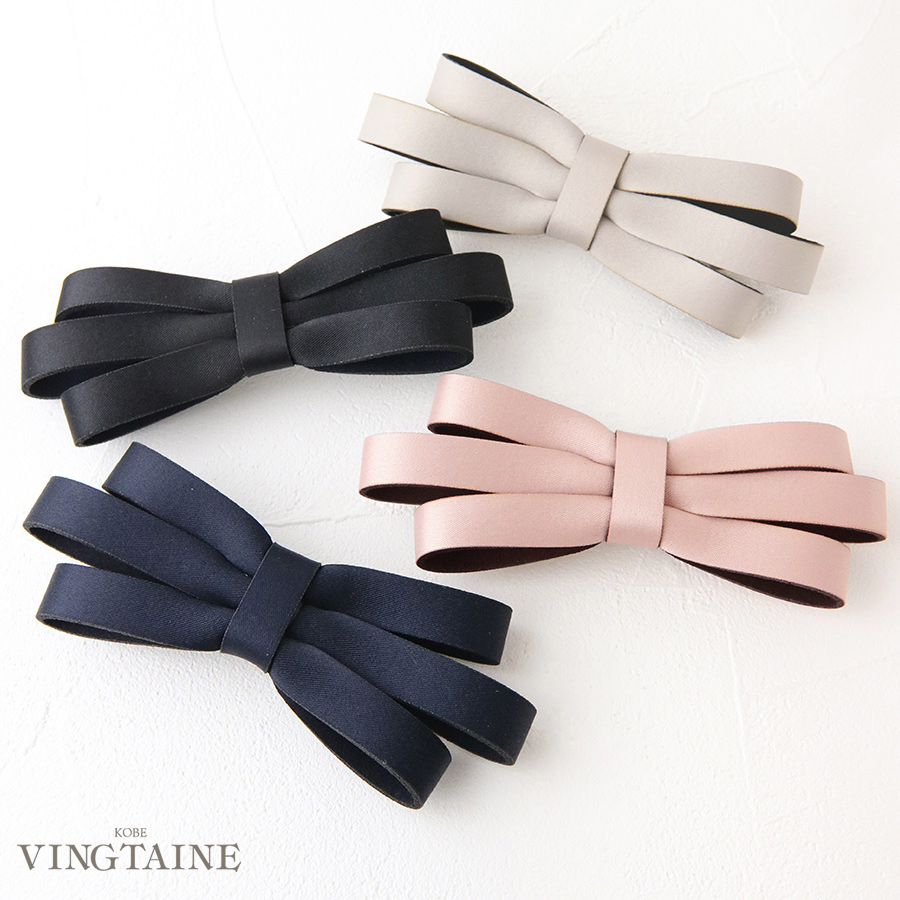 トリプルレイヤーサテンリボンバレッタ 上品 シンプル