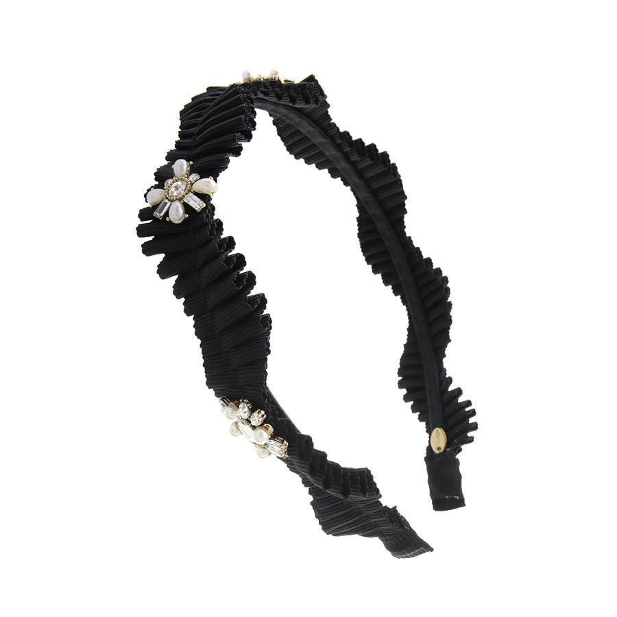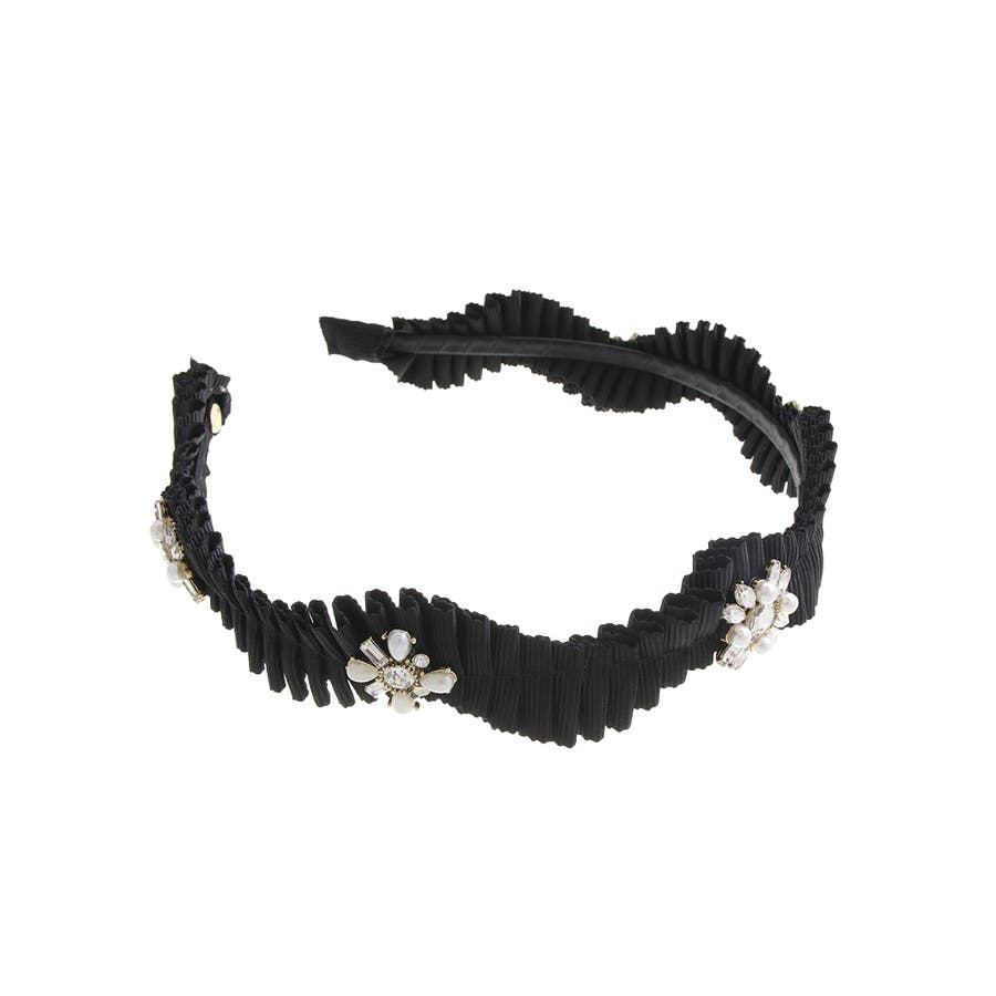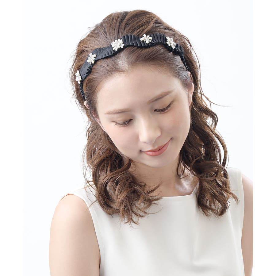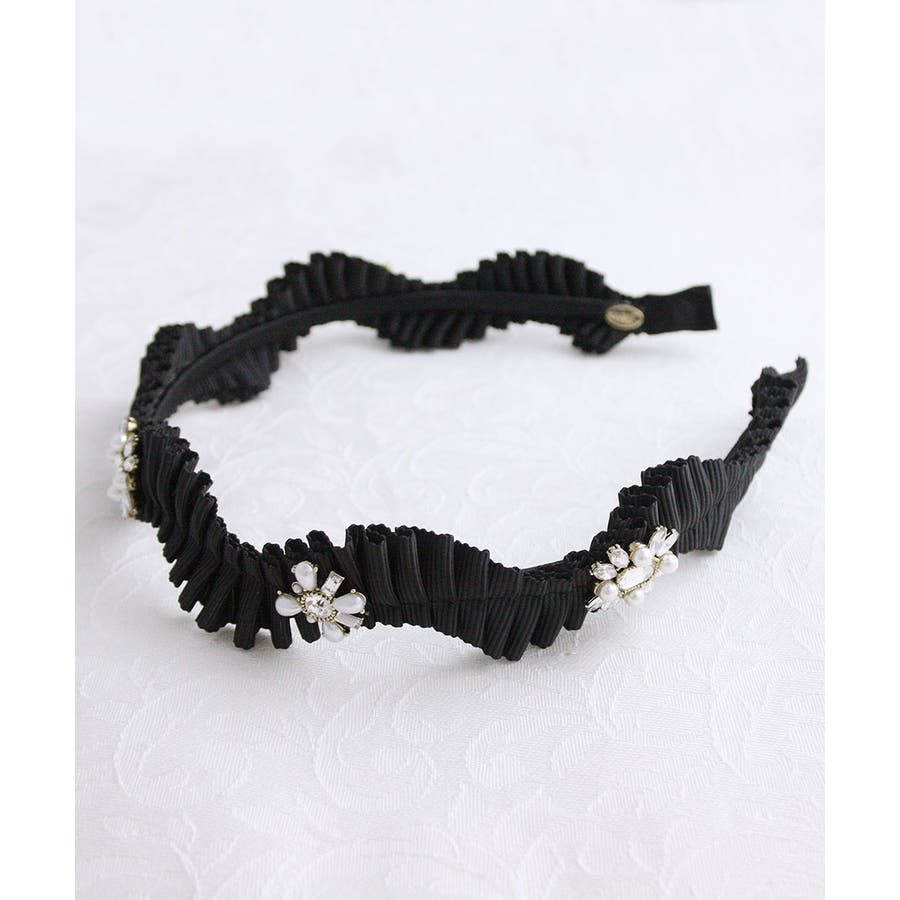 グログランパールビジューカチューシャ ウェーブ エレガント