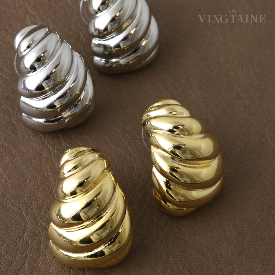 ツイストボリュームメタルピアス ゴールド シルバー