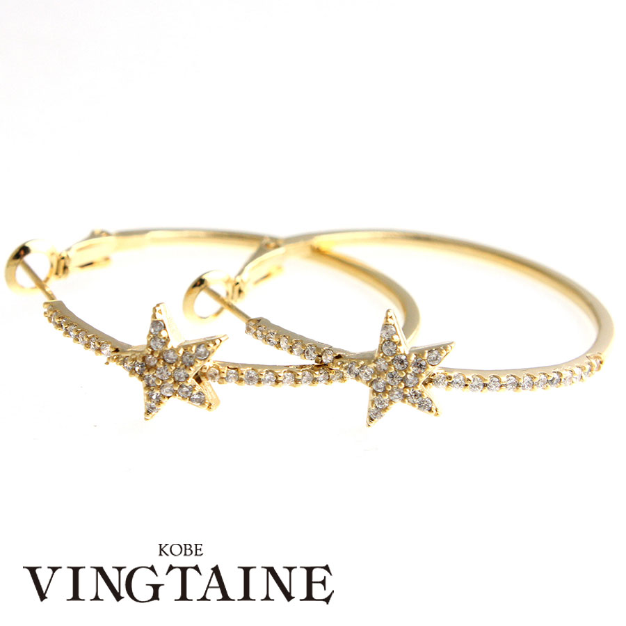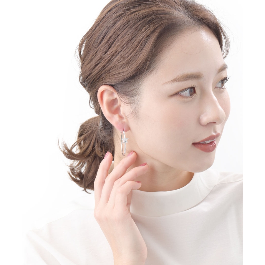 ★スタッフコメント★フープが程よいサイズ感で、スターが可愛いけれど大人な煌めきがカッコ良い!シルバーは清楚に、ゴールドは華やかな雰囲気になります。