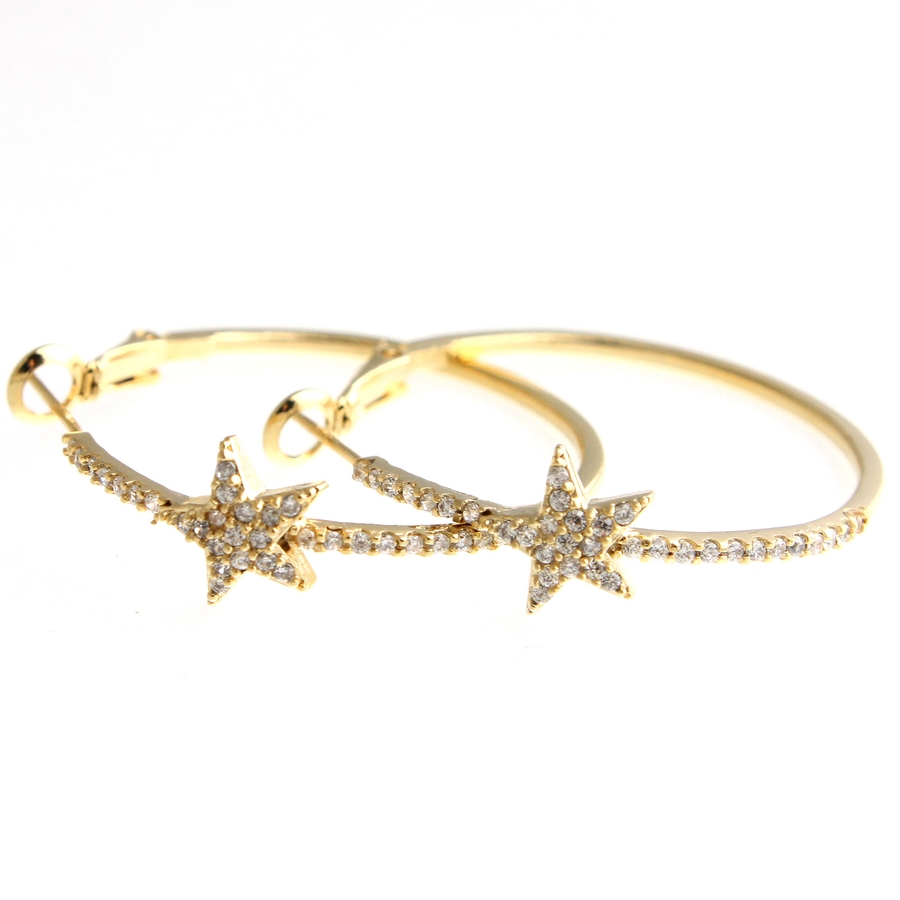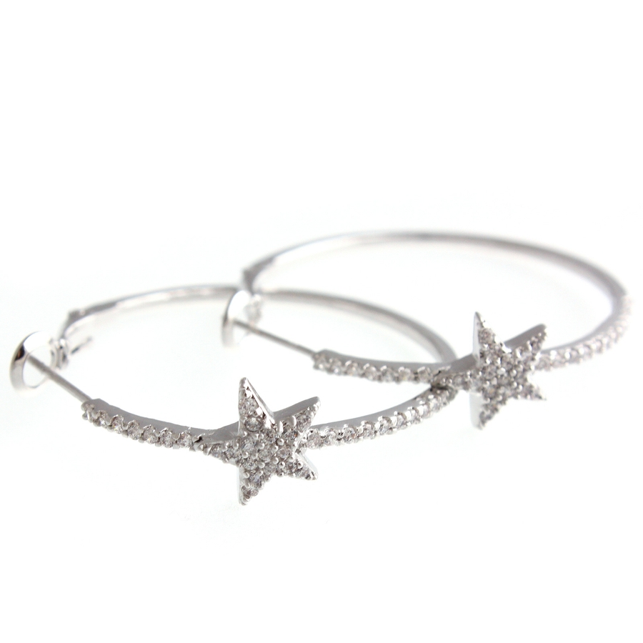 キュービックジルコニアスターフープピアス シンプルP111 1[アクセサリー
