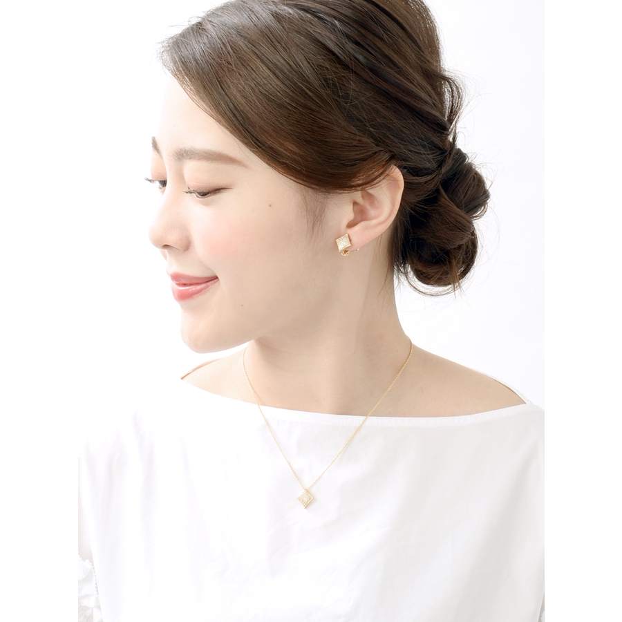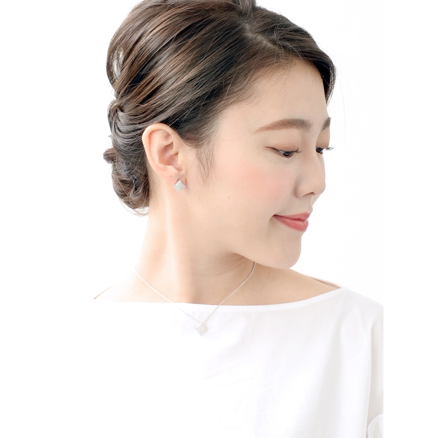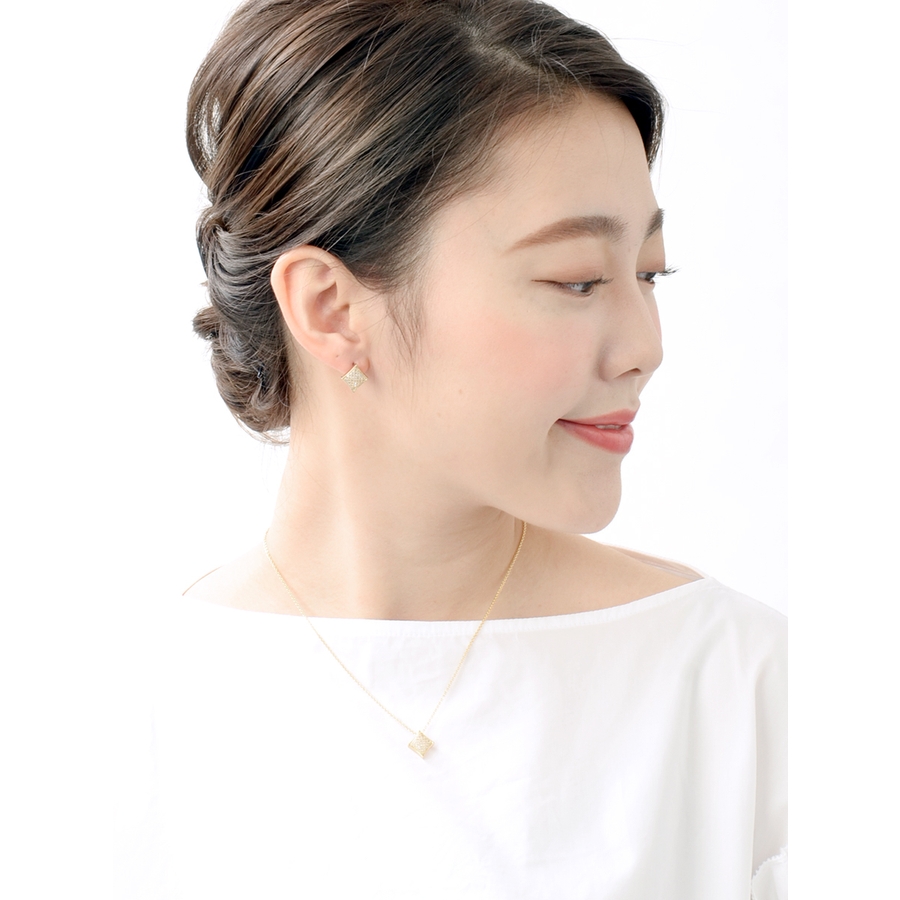 『 クラシカルを物語る 静謐な佇まい 』印象を一新させるシャープなダイヤシェイプピアス&イヤリング。存在感に絶妙のさじ加減が宿ります。ミニマムなストーンパヴェはデリケートな女性の気持ちを映すよう―。