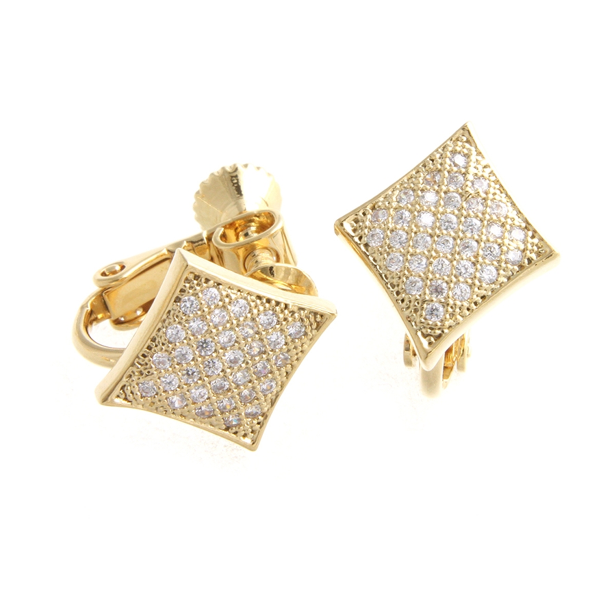 【ゴールド】ダイヤ型パヴェピアス/イヤリング/ひし型/キュービックジルコニア P1110