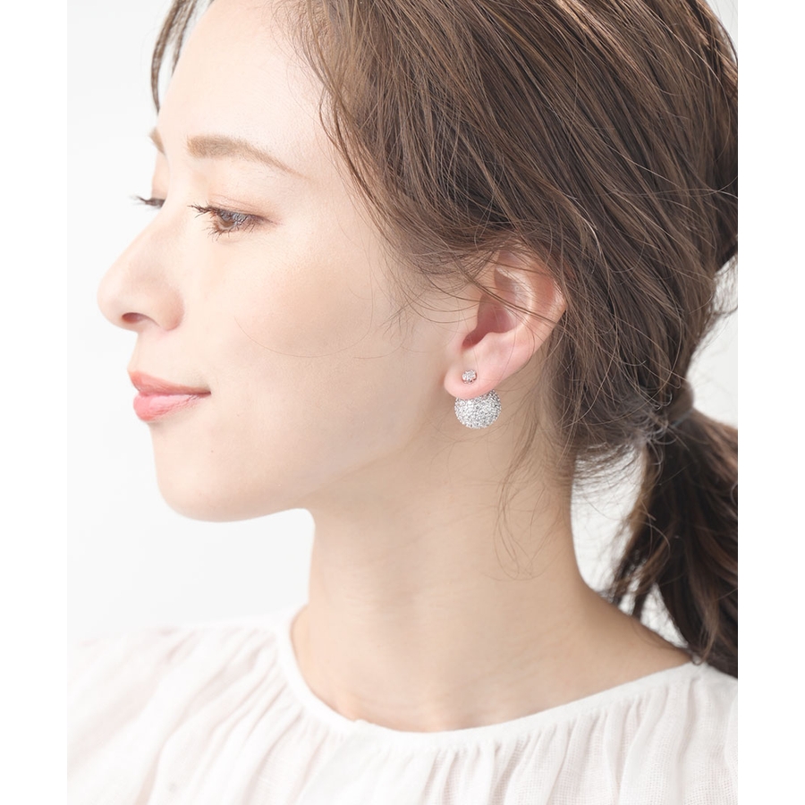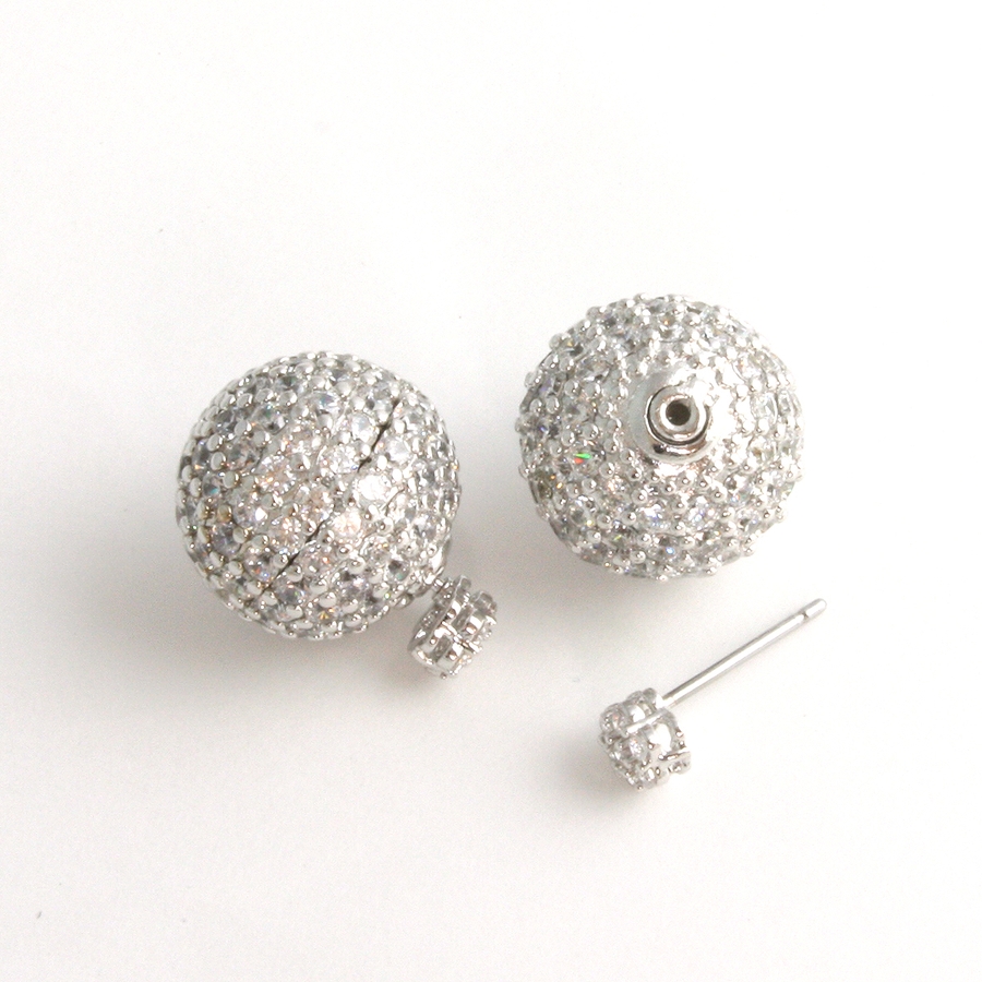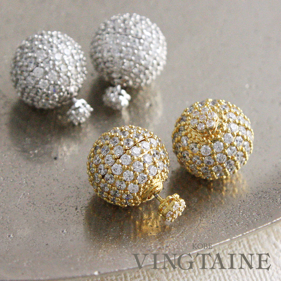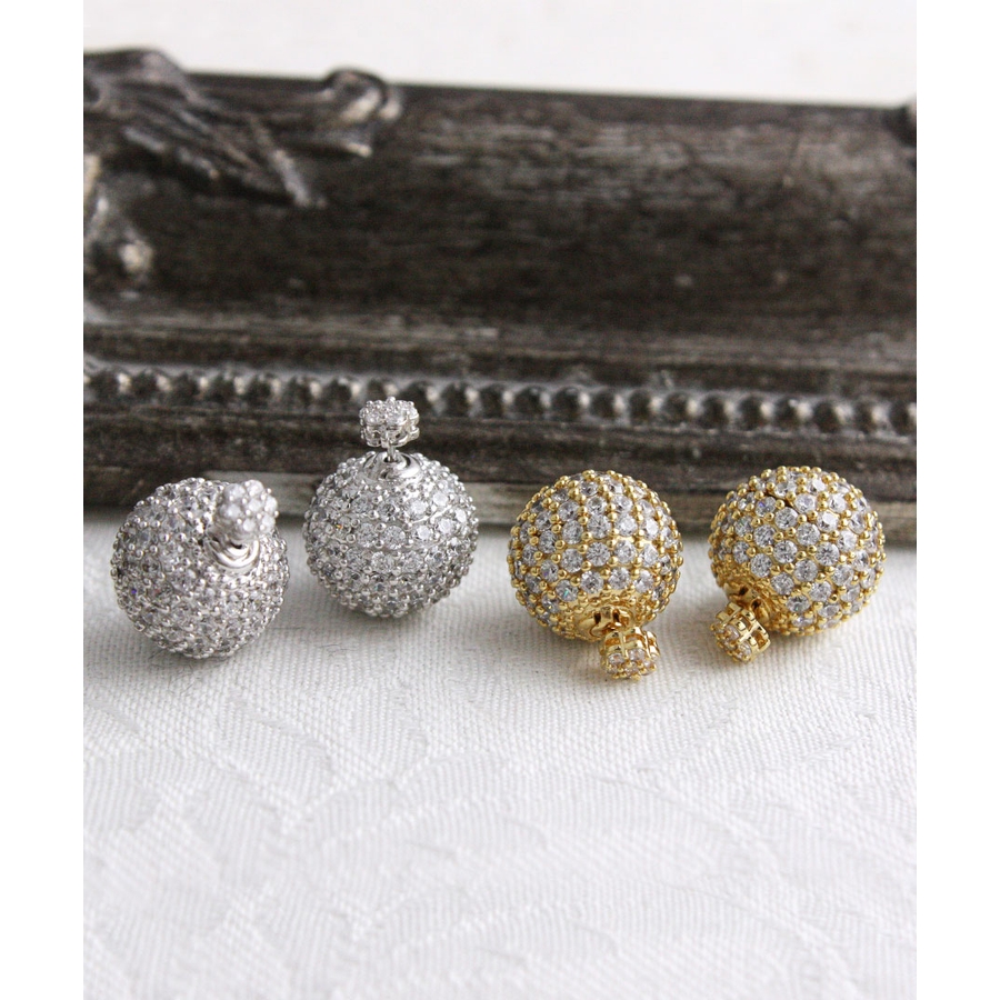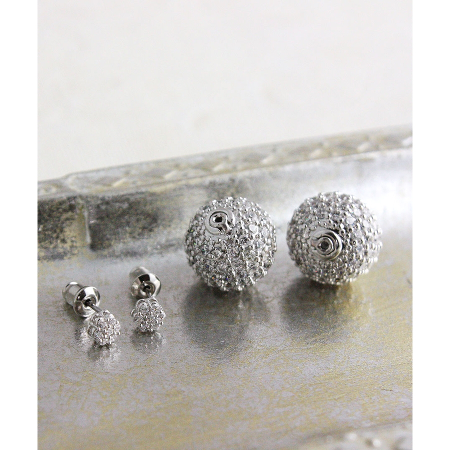 パヴェボールバックキャッチピアス/キュービックジルコニア/2way P1179