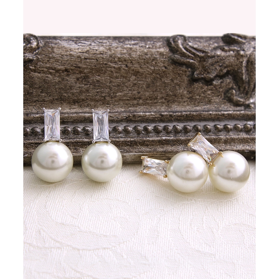 ストーン×パールピアス イヤリング キュービックジルコニア