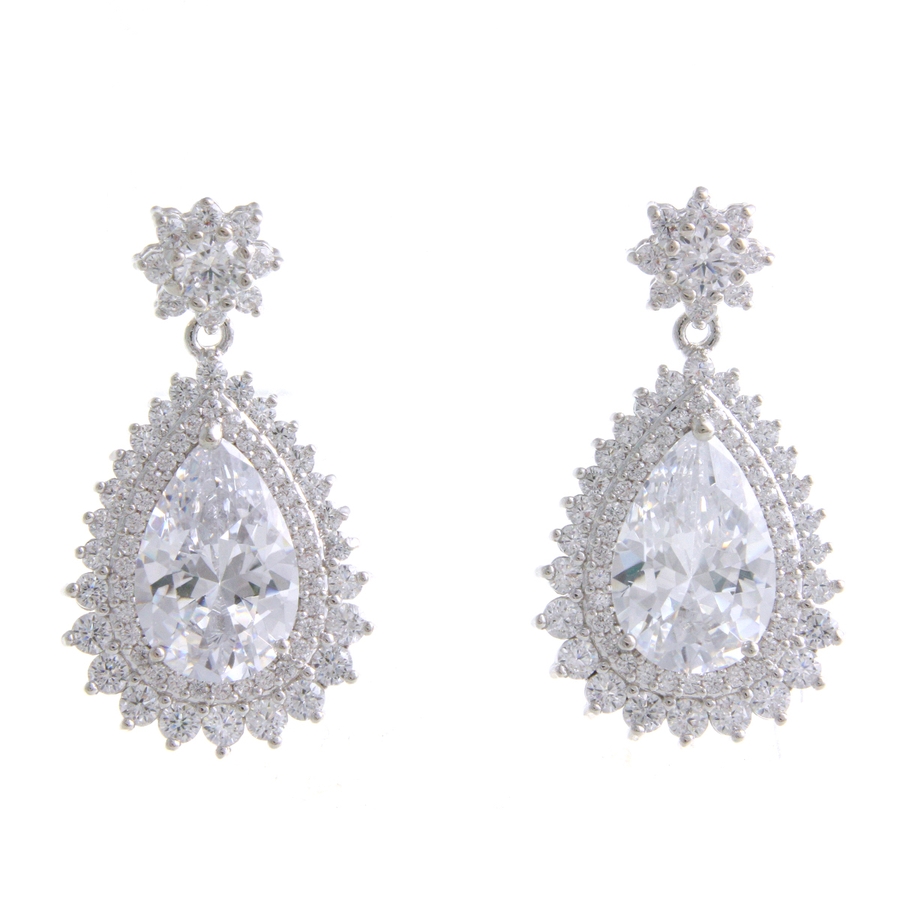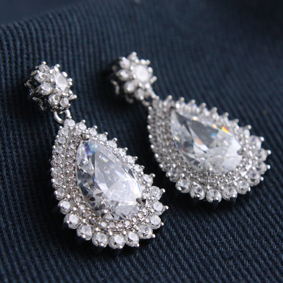 キュービックジルコニアフラワー×ティアドロップピアス イヤリング 結婚式