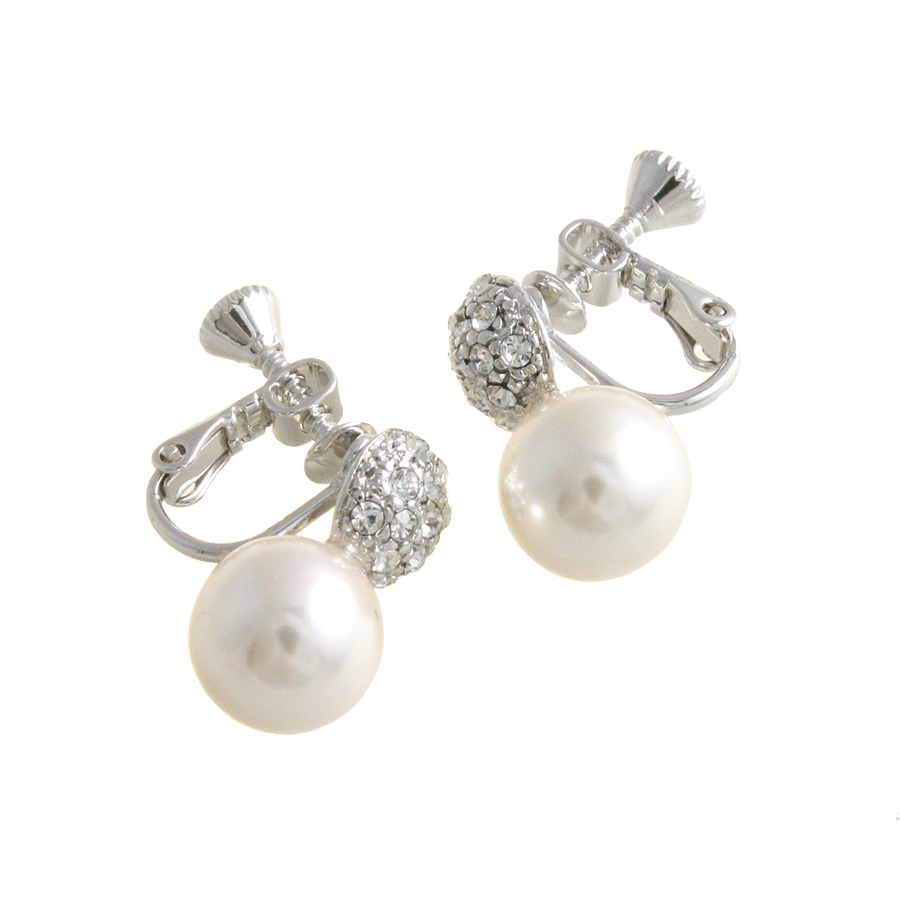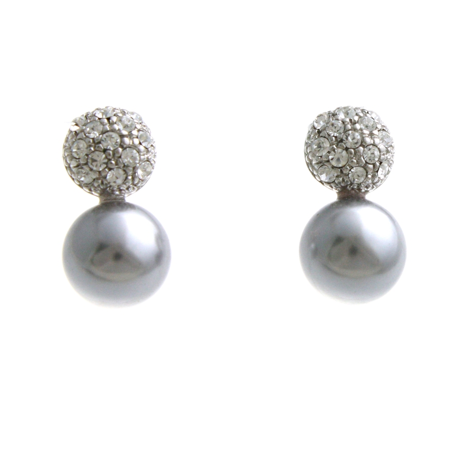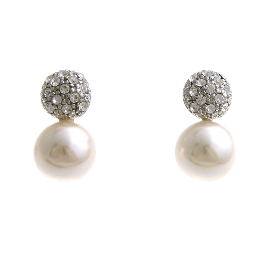 一粒パール×パヴェボールピアス イヤリング ラインストーン