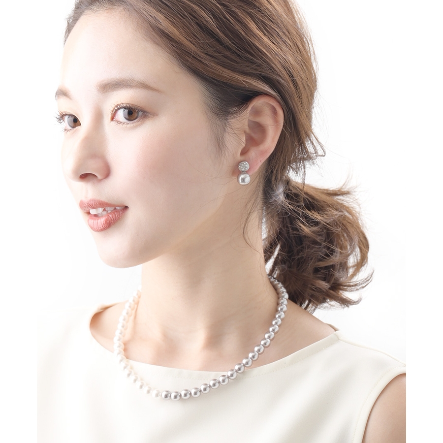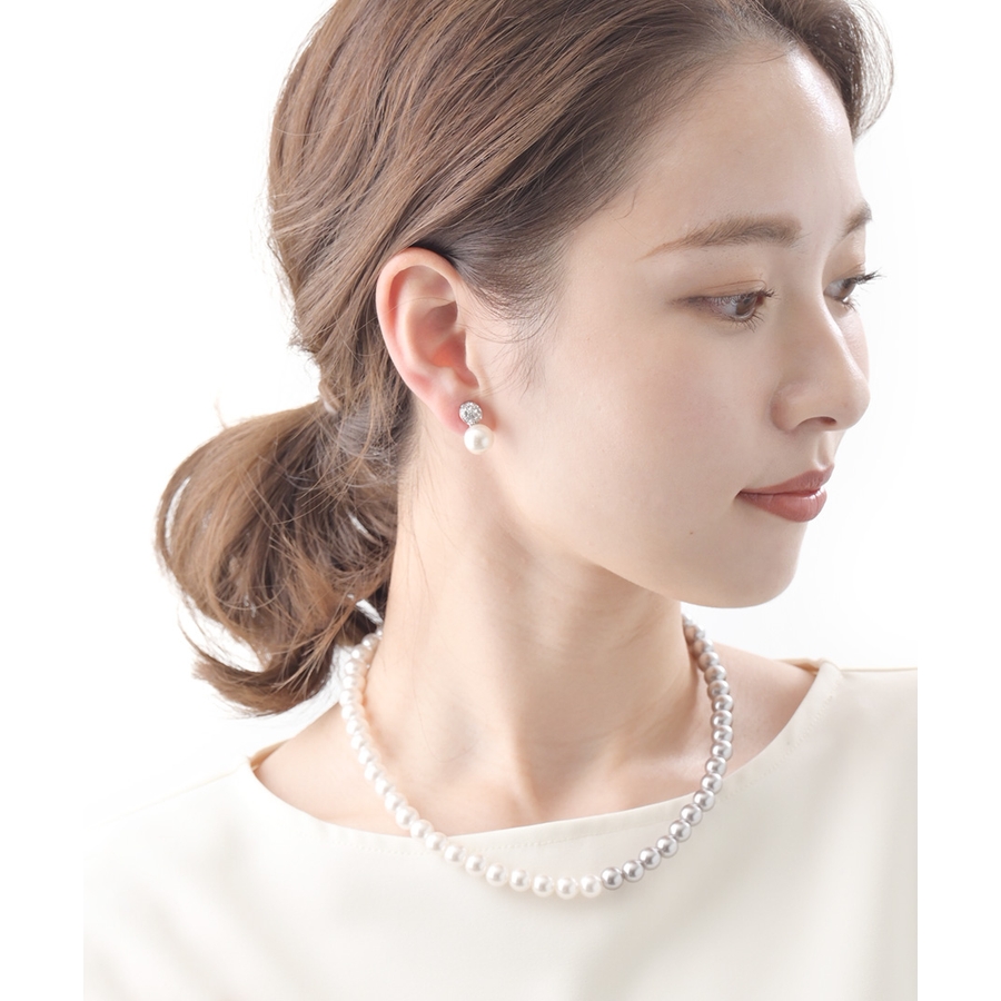 細な輝きを放つパヴェボールと上品なパールの艶めきが引き立て合うエレガントなシルエットのピアス。ボリューム感のあるシルエットだから、ちょっとしたお出かけのドレスアップにもぴったり。コーディネートを大人っぽい雰囲気にまとめてくれます。パールアクセサリーは結婚式やパーティーにはもちろん、何でもない日常にさらっと着用することで、こなれ感もUP。レディな気分が上がるアイテムとして、末永く楽しんでいただけます。