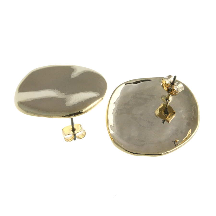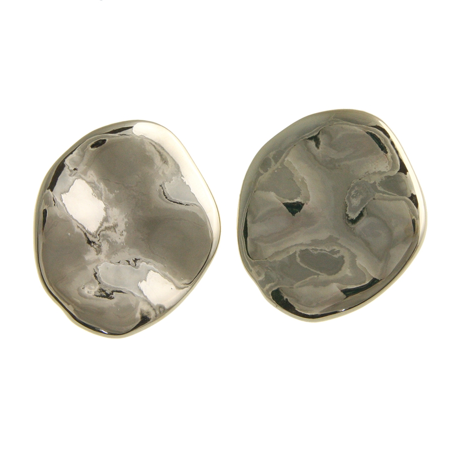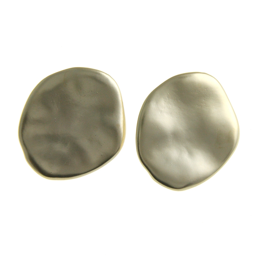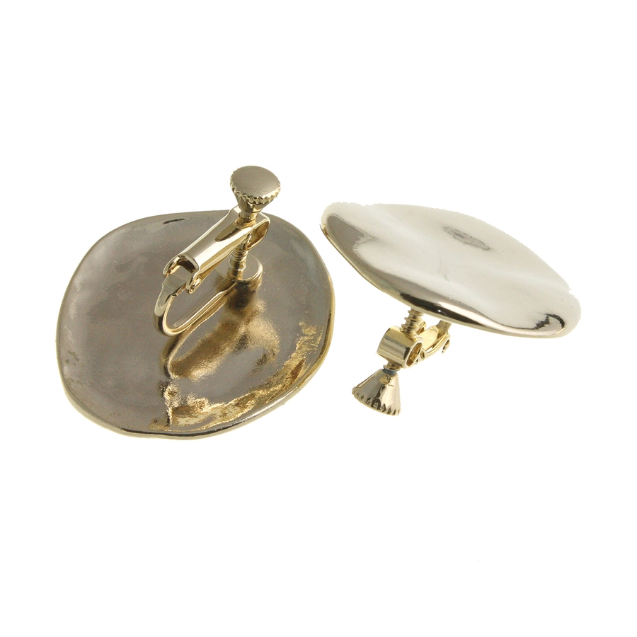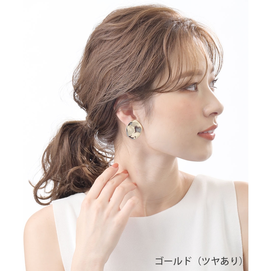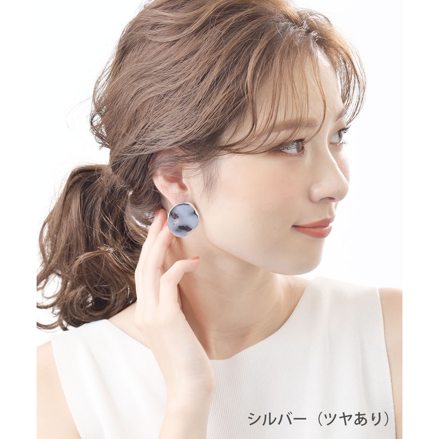 シンプルなプレートピアス/イヤリング。少し波打つデザインなので、光の当たり具合によって様々な表情を見せてくれます。存在感のあるツヤありと、日常にスッと馴染むマット(ツヤ消し)の2パターン展開が嬉しい一品。大ぶりだからコーディネートのアクセントにぴったりです。