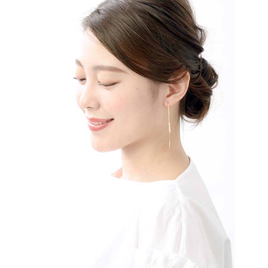 【ピアス】バー×ウェーブアメリカンピアス シンプル 揺れ