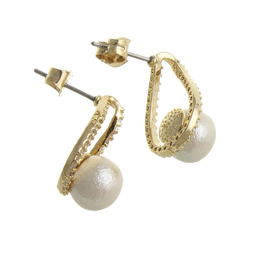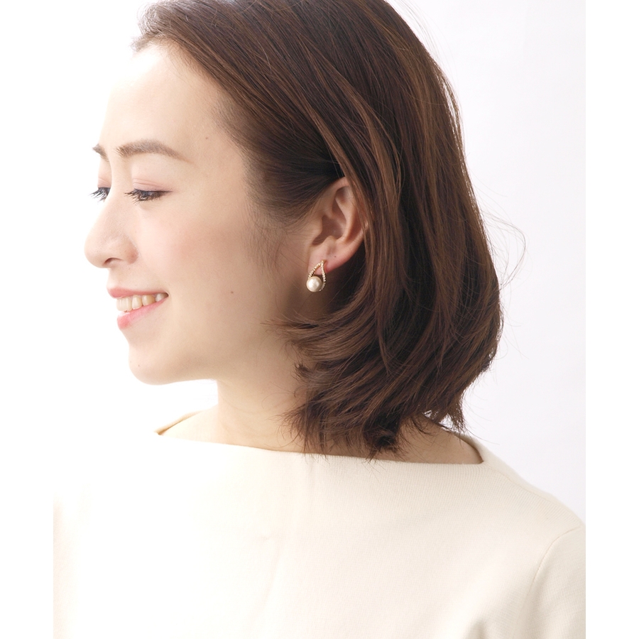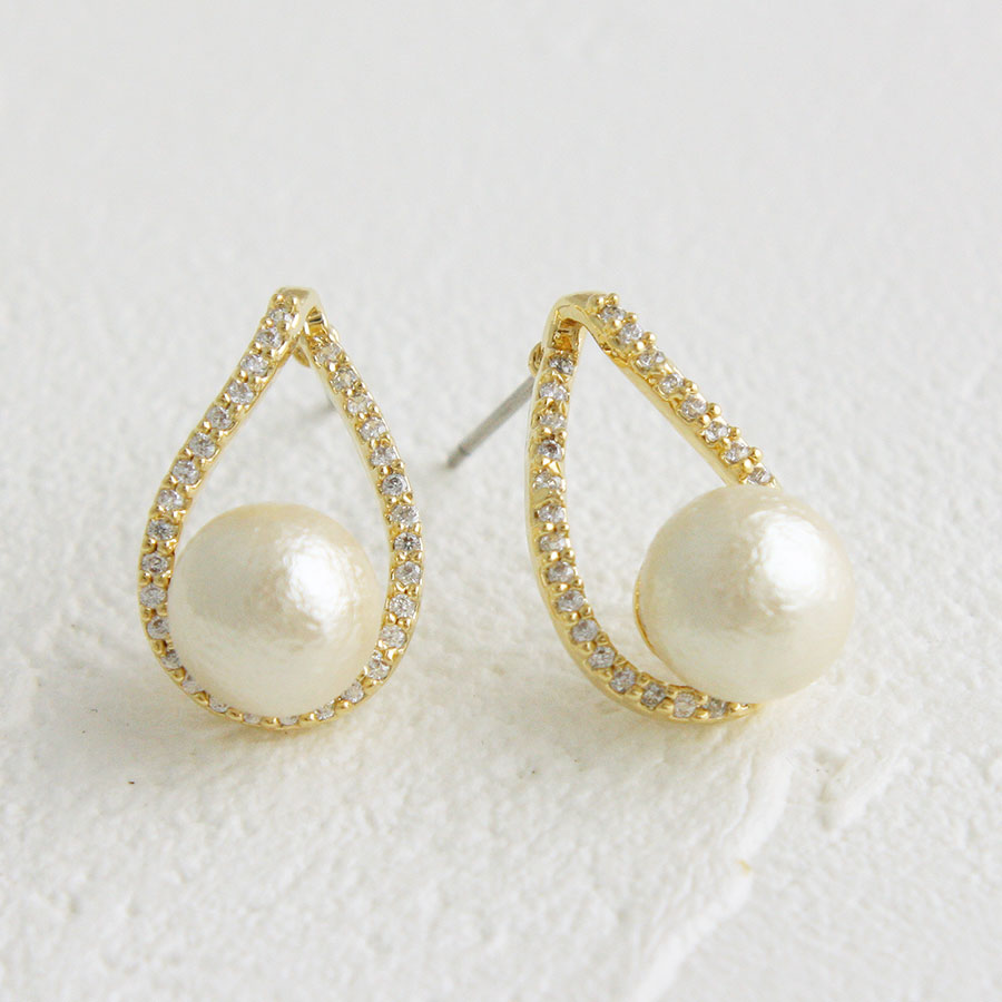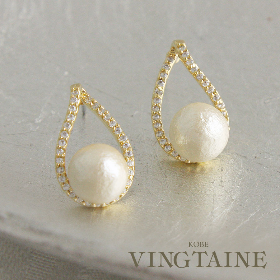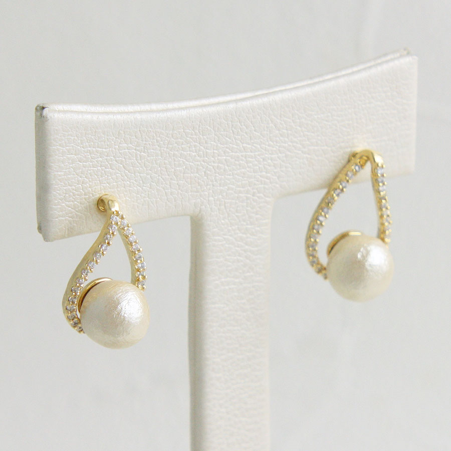 コットンパール×ティアドロップカーブラインピアス キュービックジルコニア 華奢