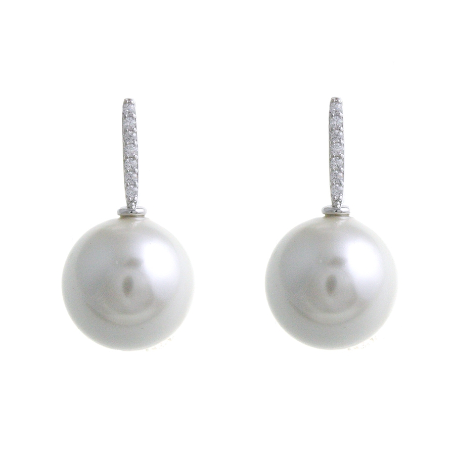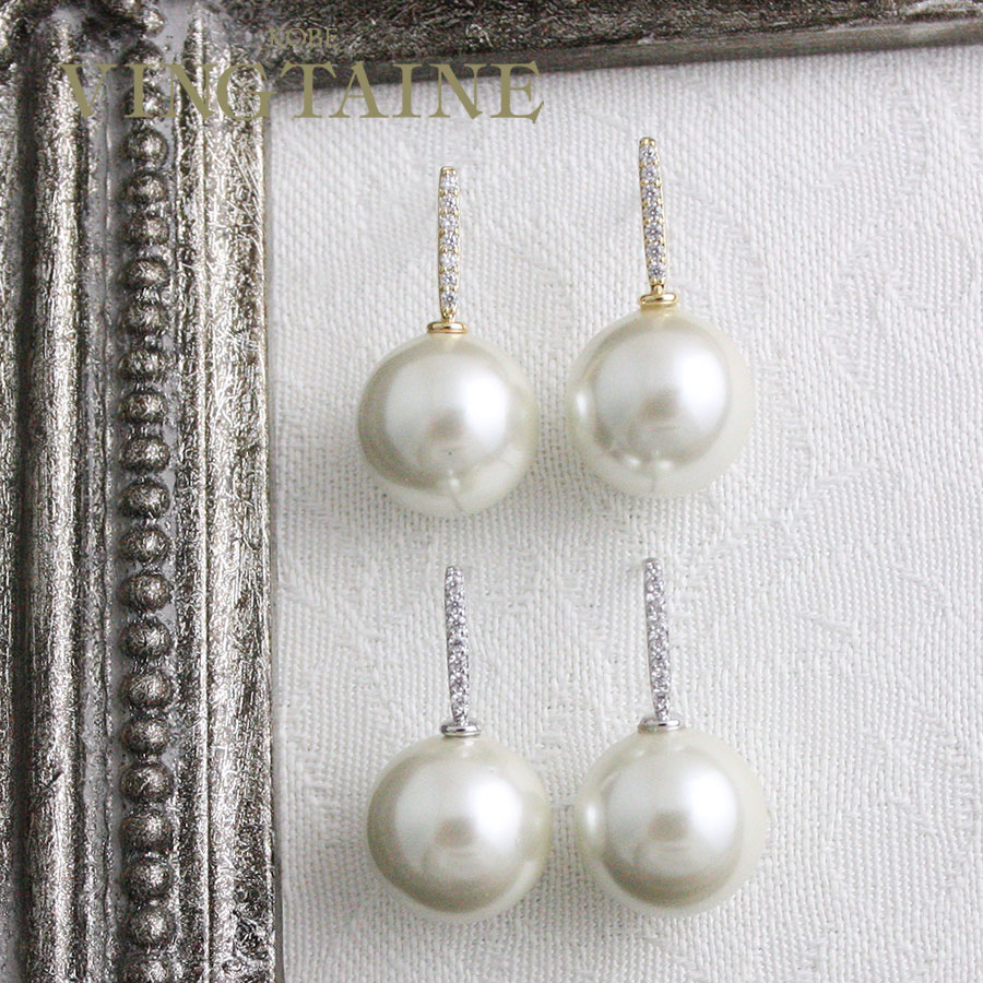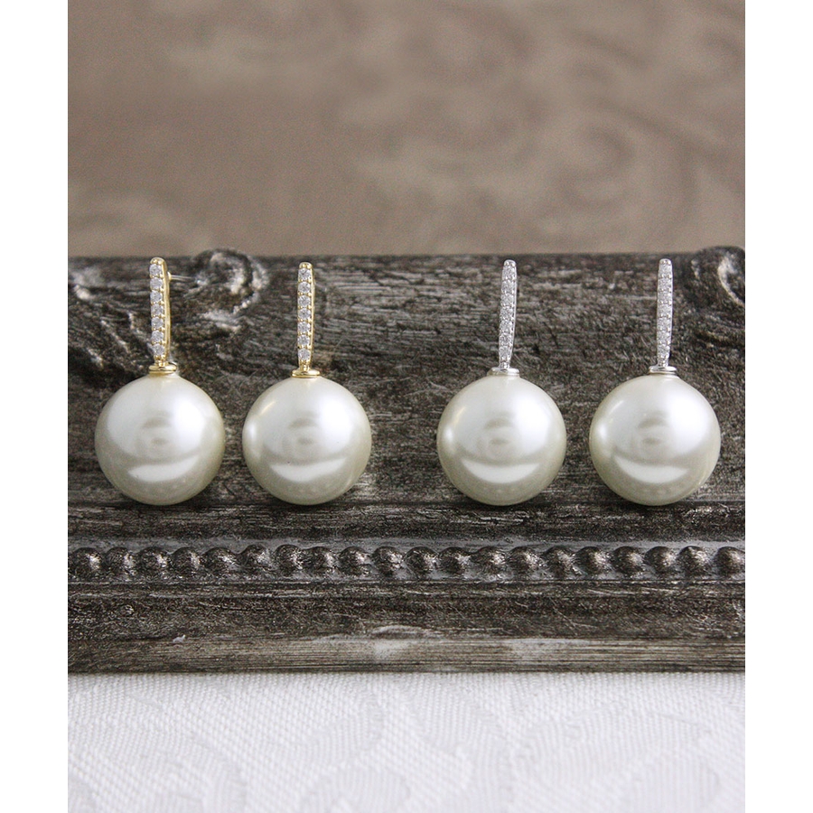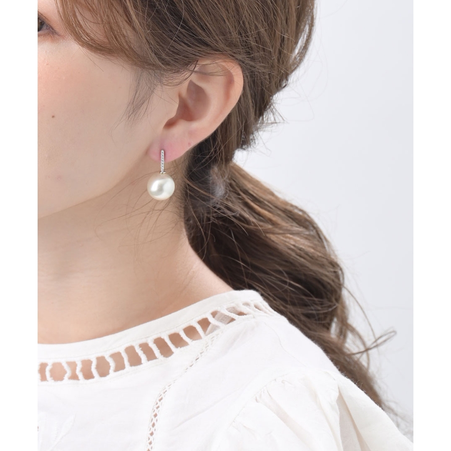 キュービックジルコニアラインパールピアス エレガント シンプル