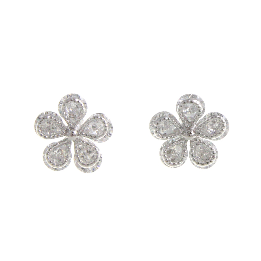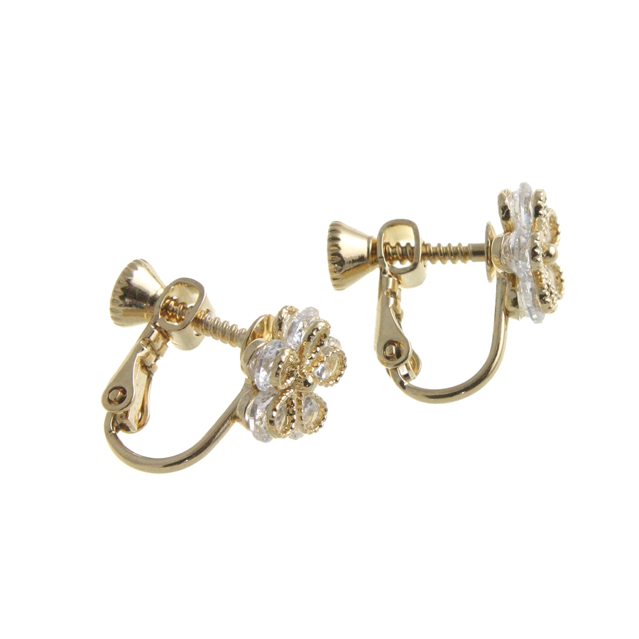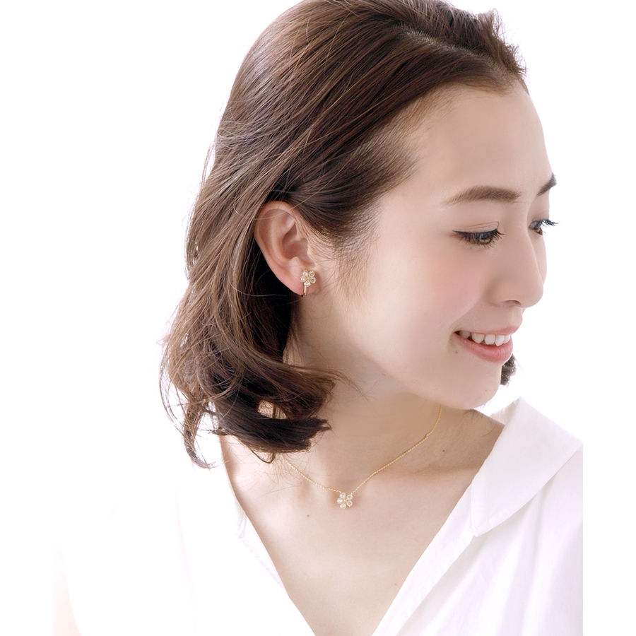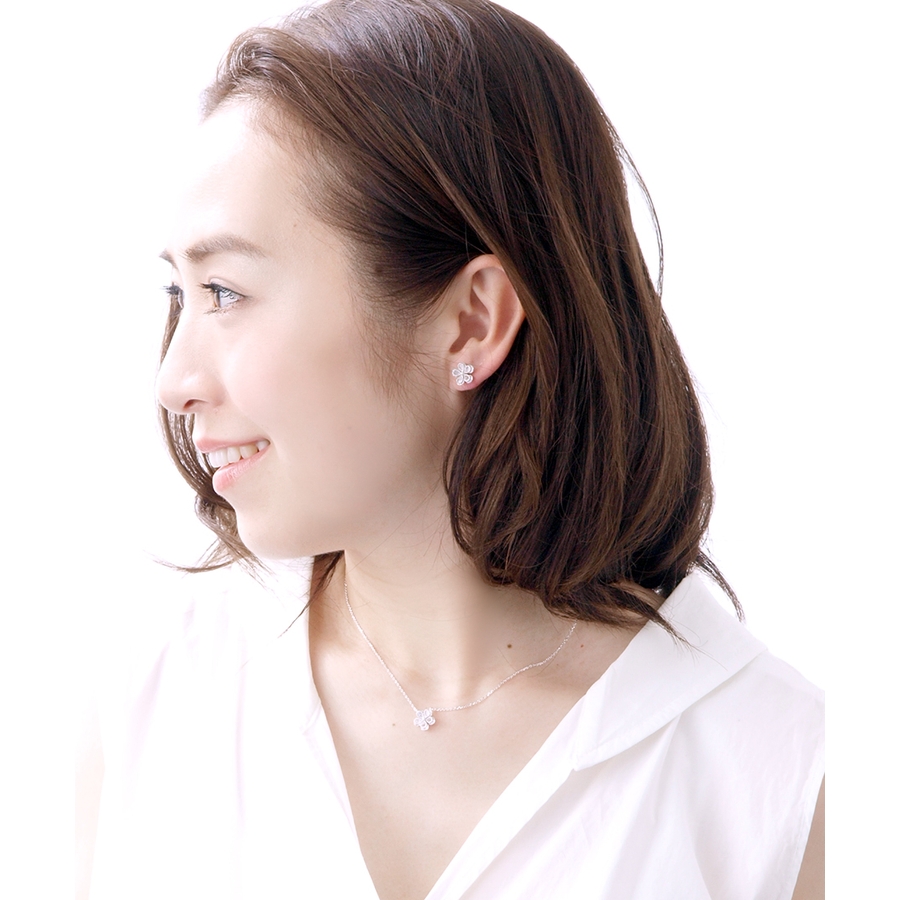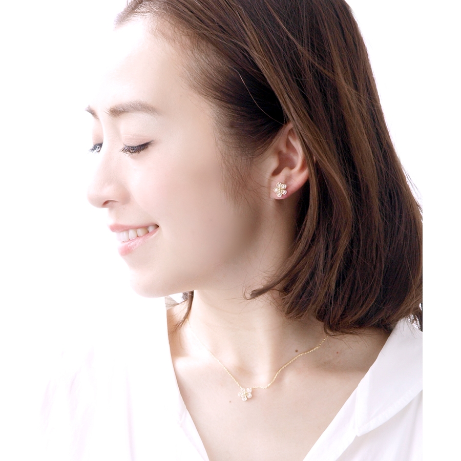 花びら一枚一枚をミル打ち加工で囲った、繊細なデザインが引き立つフラワーアクセサリー。キュービックジルコニアをたっぷりと使用した立体的なお花が、女性らしさを印象付けてくれます。華美になりすぎないサイズ感が上品なので、日常使いはもちろん、パーティーシーンにもお勧め。キラキラと煌き、お顔周りを明るく見せてくれます。