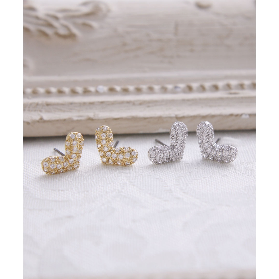 ぷっくりと丸みを帯びたハートがフェミニンなピアス・イヤリング。ハートにたっぷりと敷き詰めたキュービックジルコニアは、人気の高いパヴェデザイン。甘いハートモチーフも、上品な煌きを放つストーンで大人っぽく楽しめます。