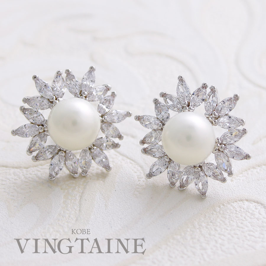 クラシカルパールビジューピアス イヤリング ネジバネ式