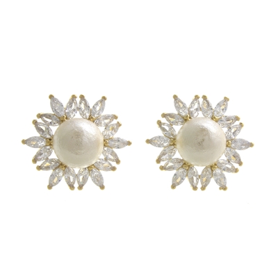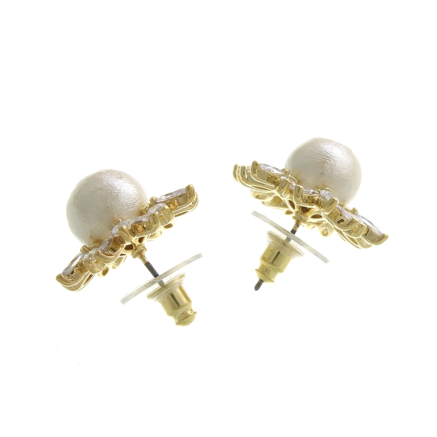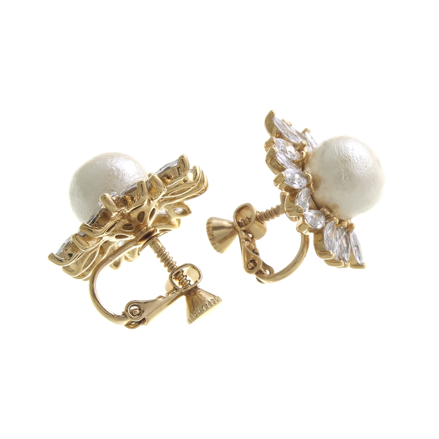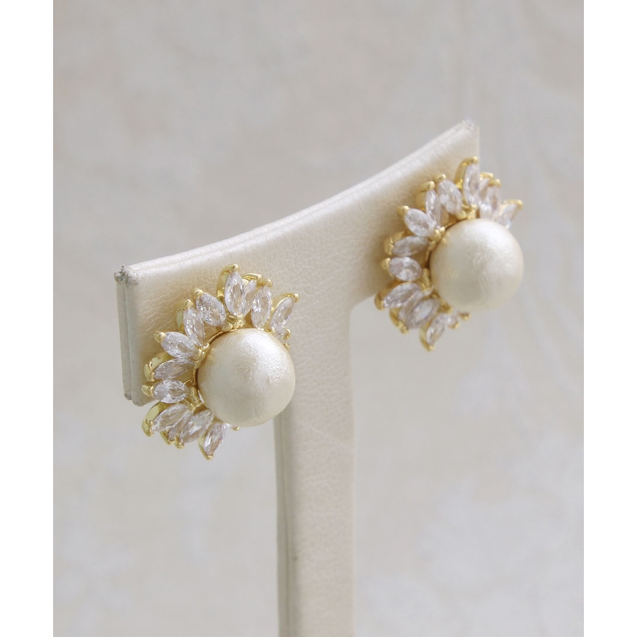 クラシカルコットンパールビジューピアス イヤリング ネジバネ式