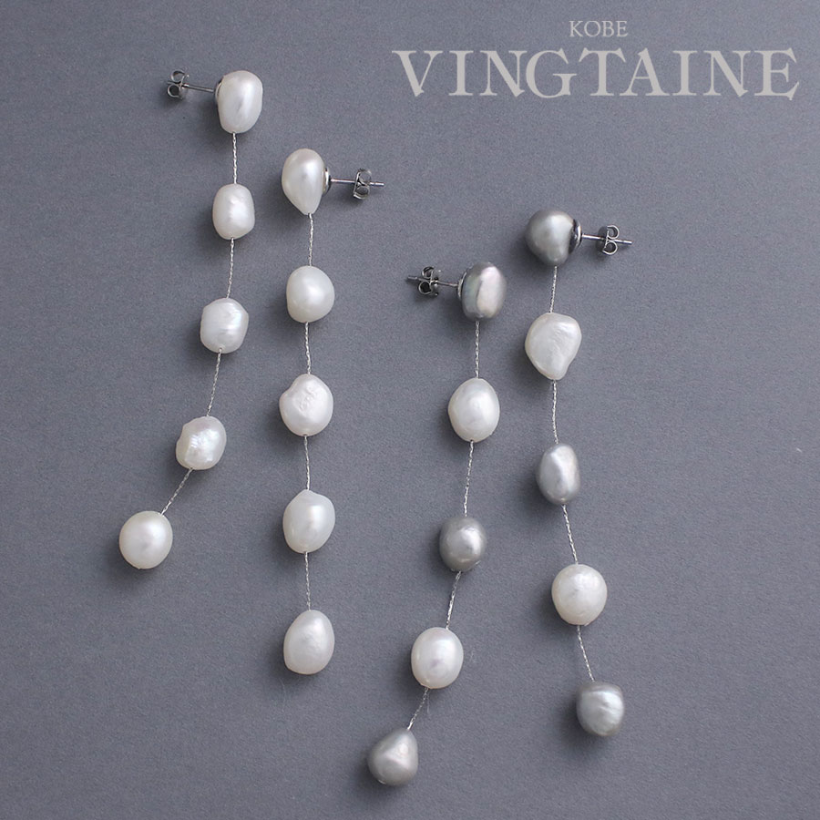 5粒淡水パールロングピアス イヤリング ロングピアス