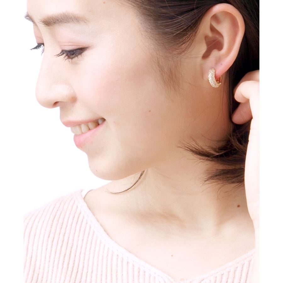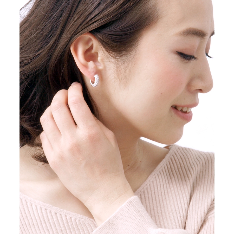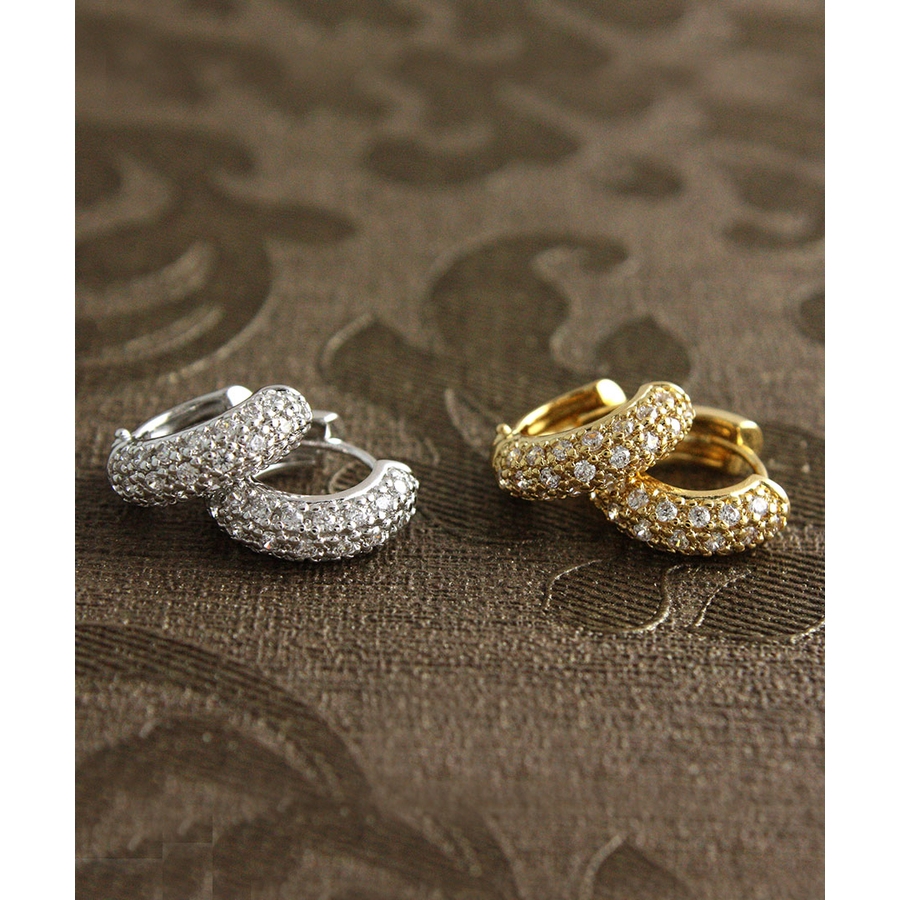 大人の女性にピッタリな、高度なパヴェセッティングが施されたフープピアス。一つ一つのストーンが繊細に煌いて、表情をエレガントに演出してくれます。