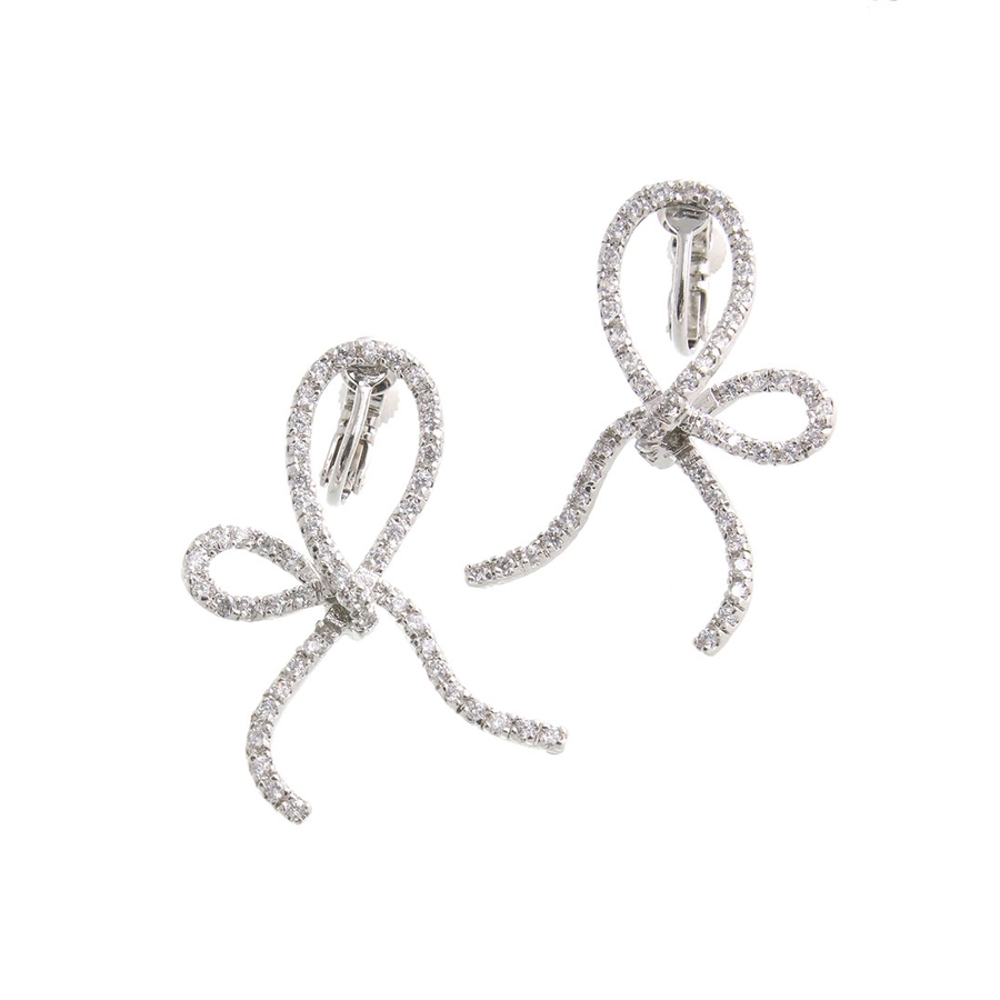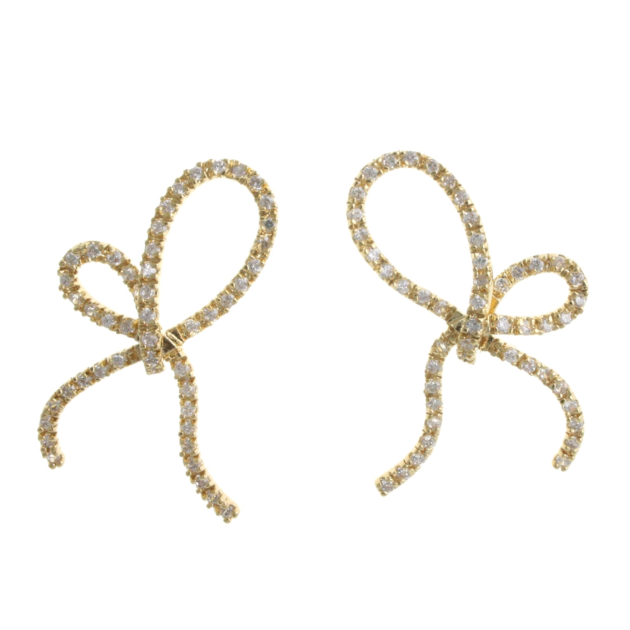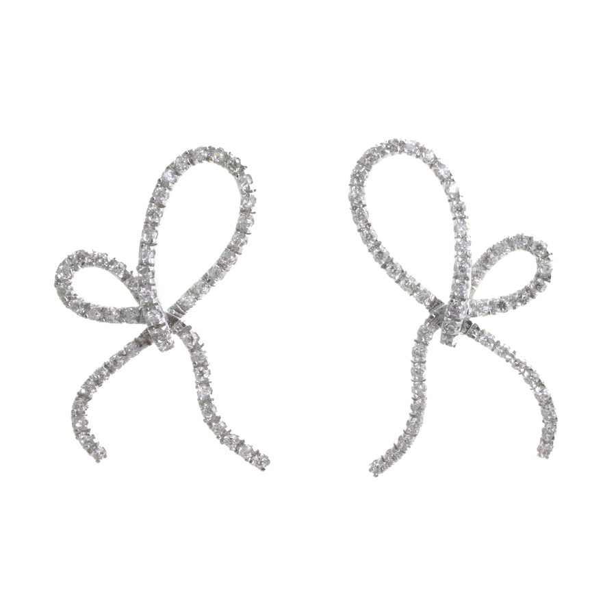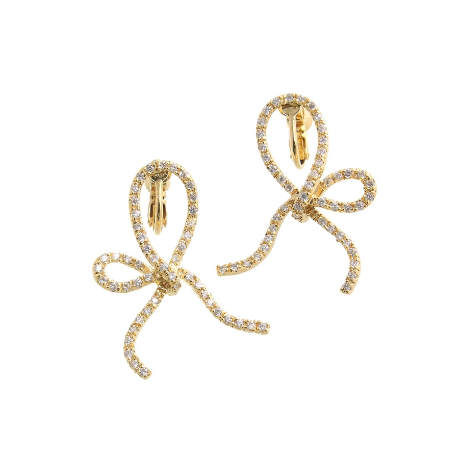 スタイリッシュに楽しめる大人の女性のためのリボンピアス・イヤリング。甘くなりがちなリボンモチーフを、上品な輝きをまとったラインだけでアレンジ。アシンメトリーなシルエットで美しい縦のラインを作り出してくれます。大きさも印象的なサイズだから、繊細な輝きをたっぷりと振りまいて、大人っぽく楽しめます。