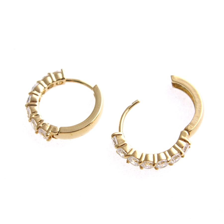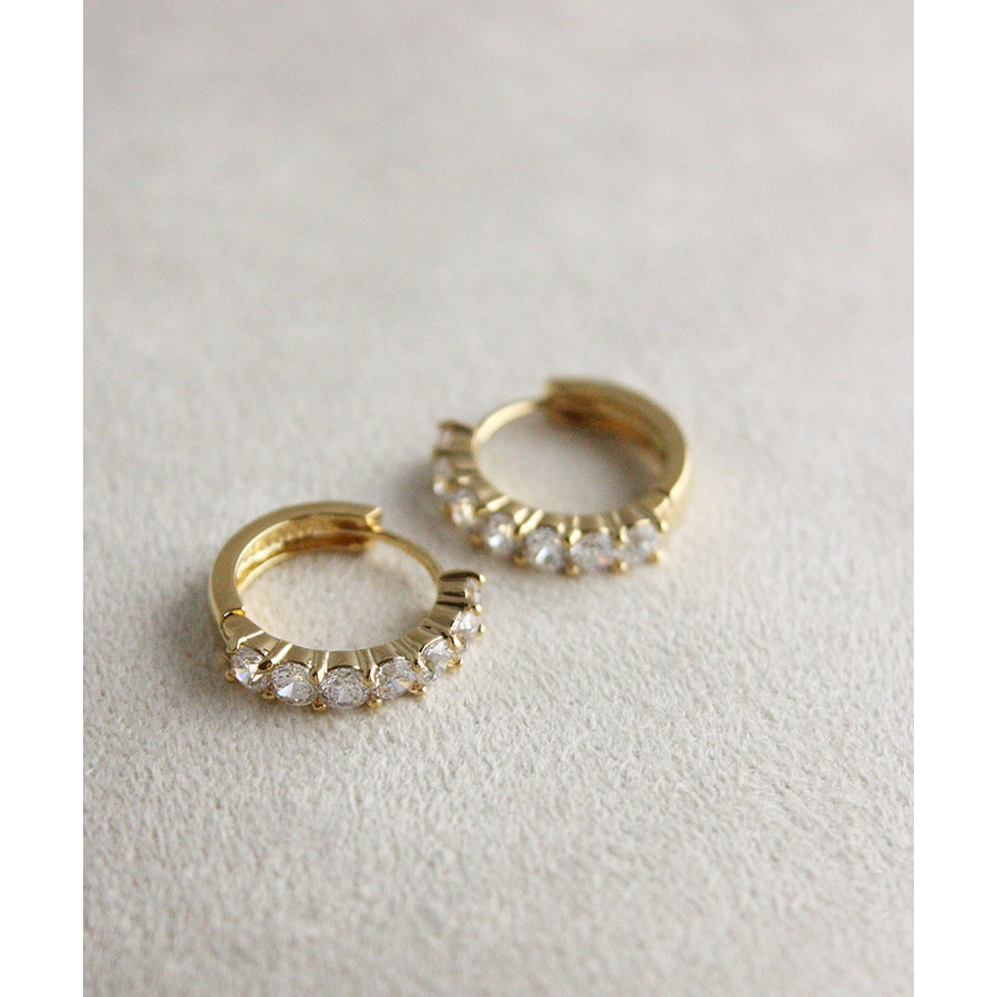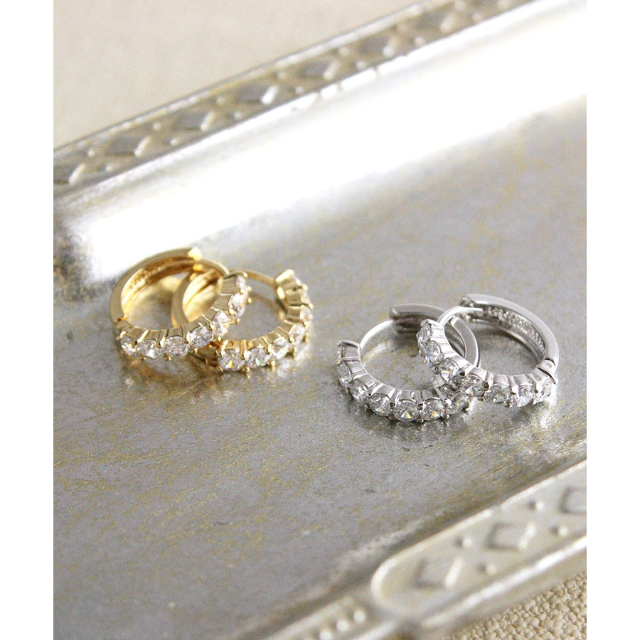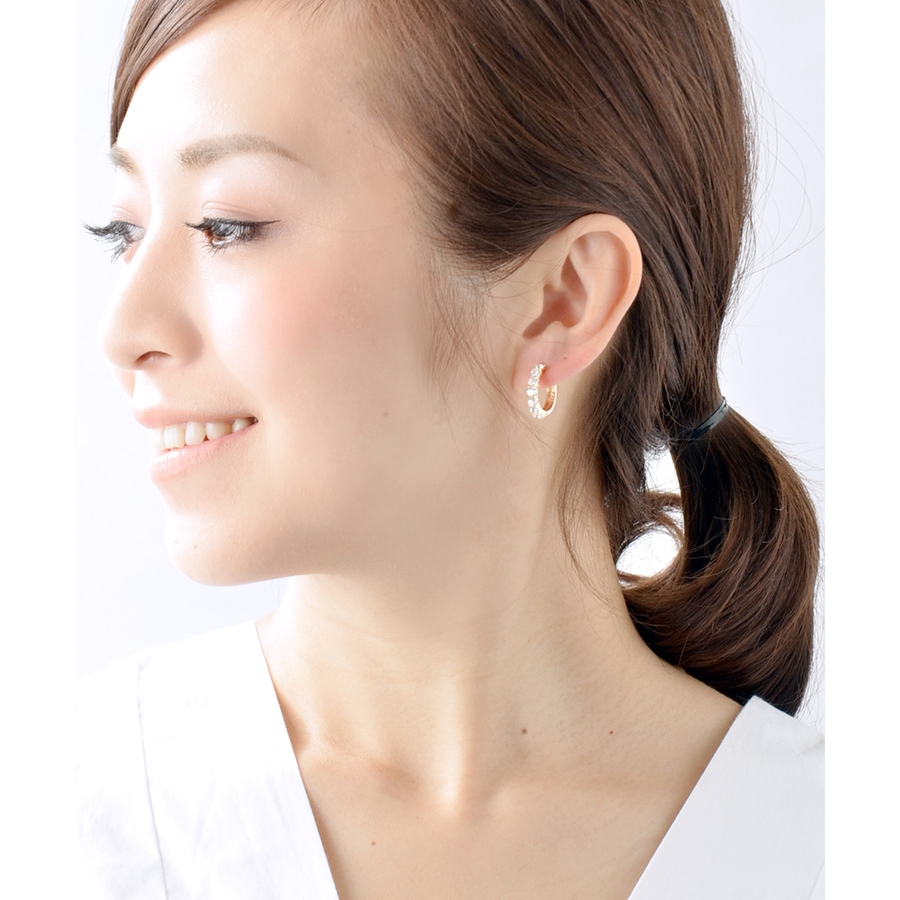 アクセサリーはシンプルなものが好き、という方にお勧めのリングピアス。小ぶりのサイズ感ながら、一粒一粒のキュービックジルコニアがしっかりと輝き、お顔周りを華やかに演出してくれます。