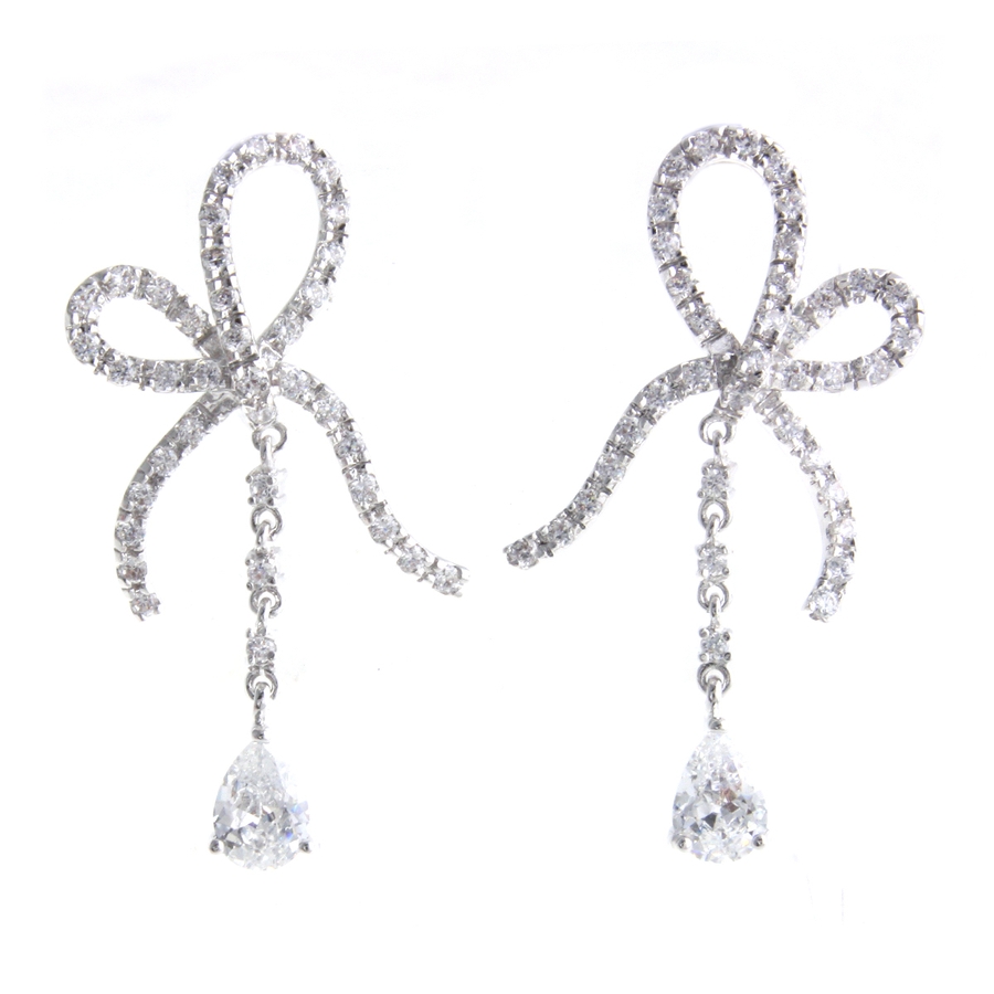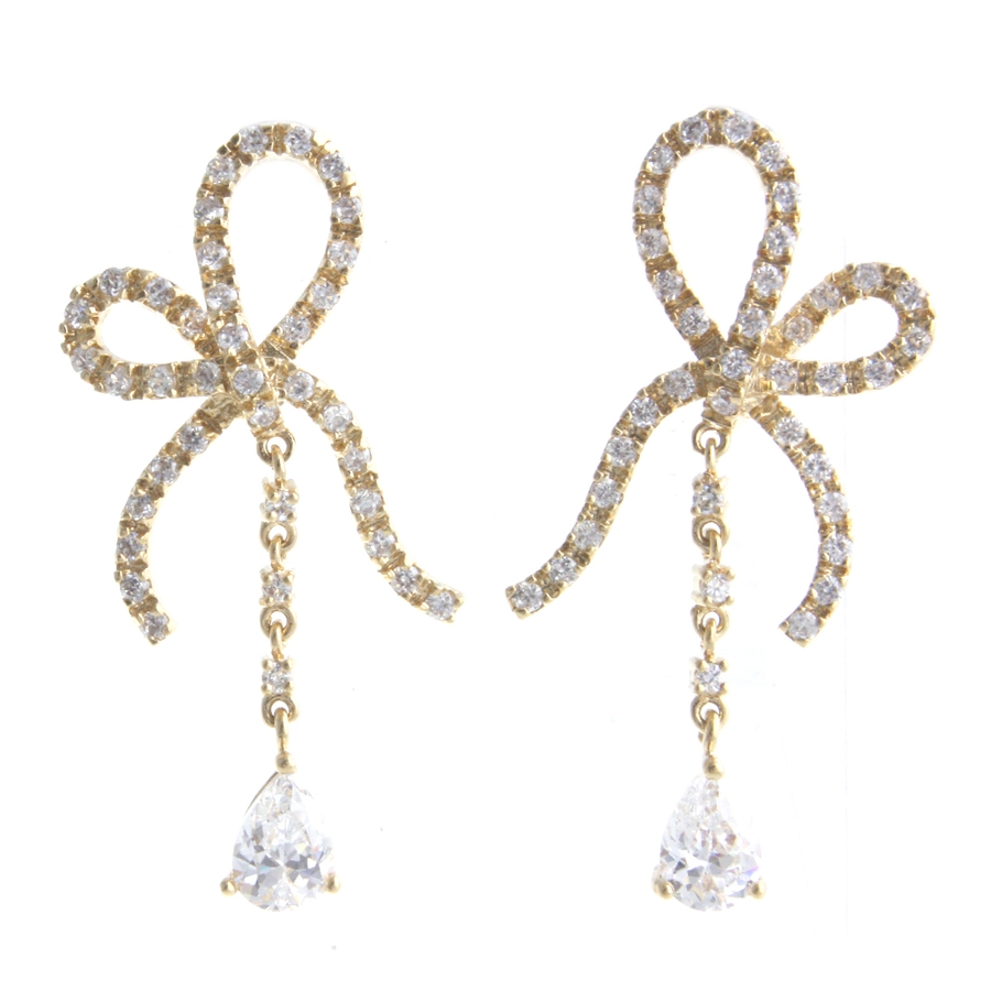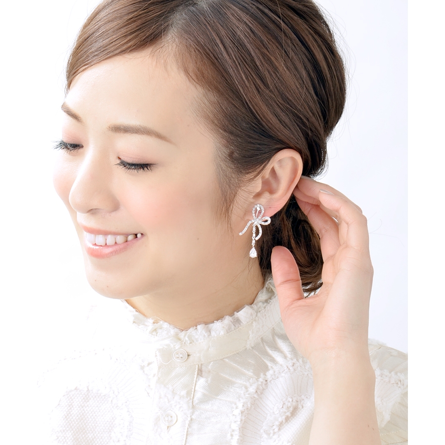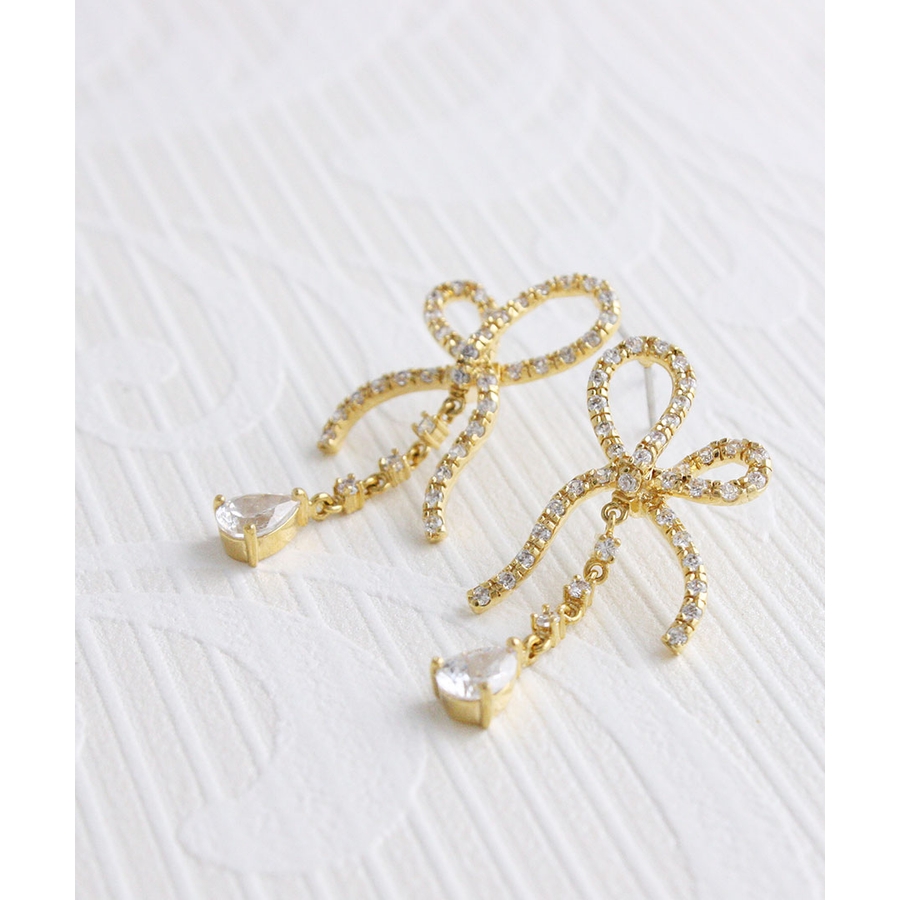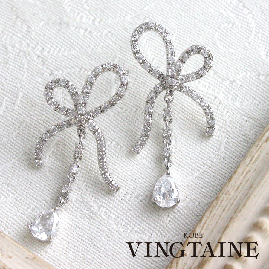ゴージャスリボンピアス イヤリング キュービックジルコニア