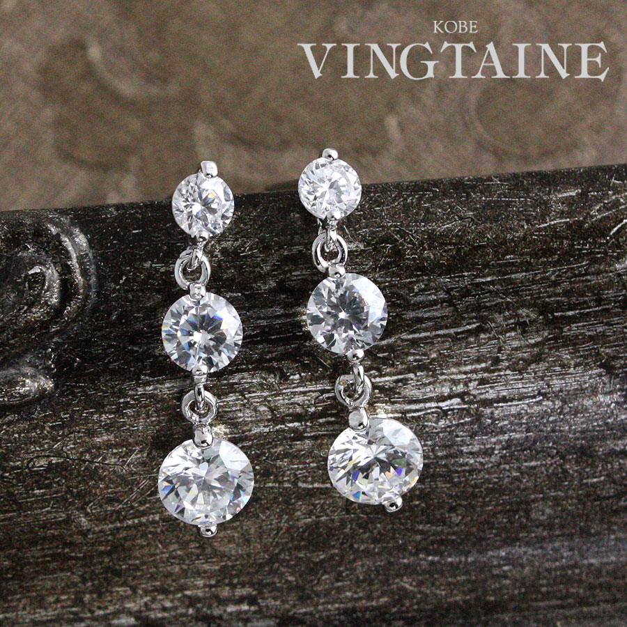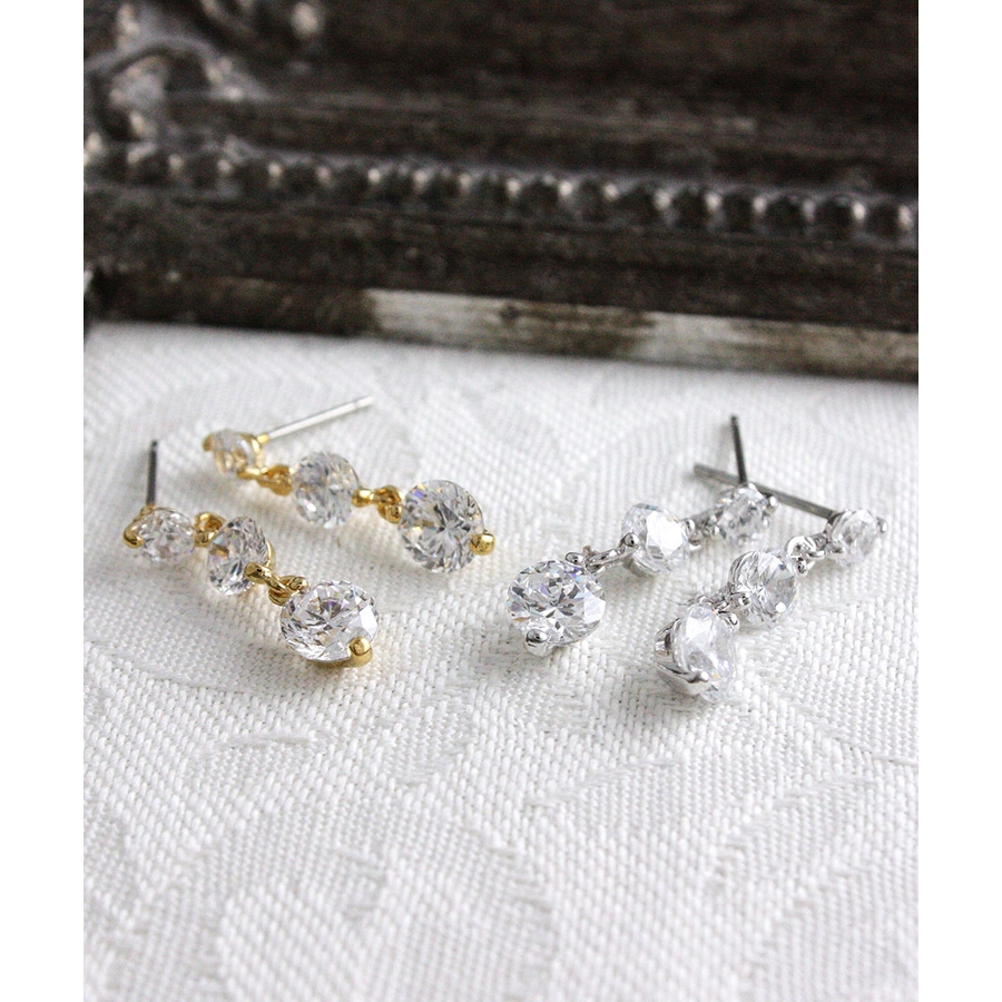 トリプルキュービックぶらさがりピアス/イヤリングP2-38