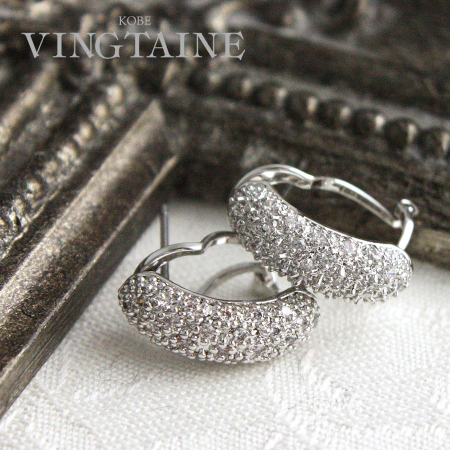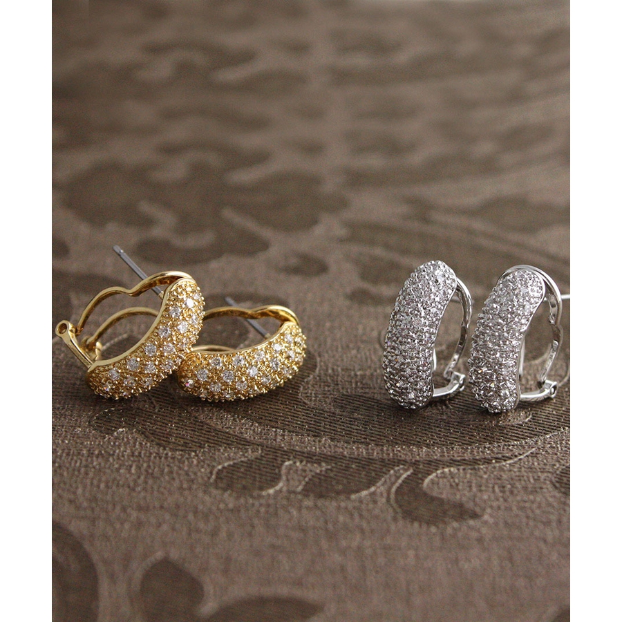 ぽってりと女性らしい丸みのあるフォルムが魅力のシンプルピアス。表面にぎっしりとキュービックジルコニアを敷き詰めた、女性に人気の高いパヴェデザインです。華やかながら繊細な印象も与えてくれるパヴェセッティングは、上品な輝きが似合う大人の女性にお勧めです。