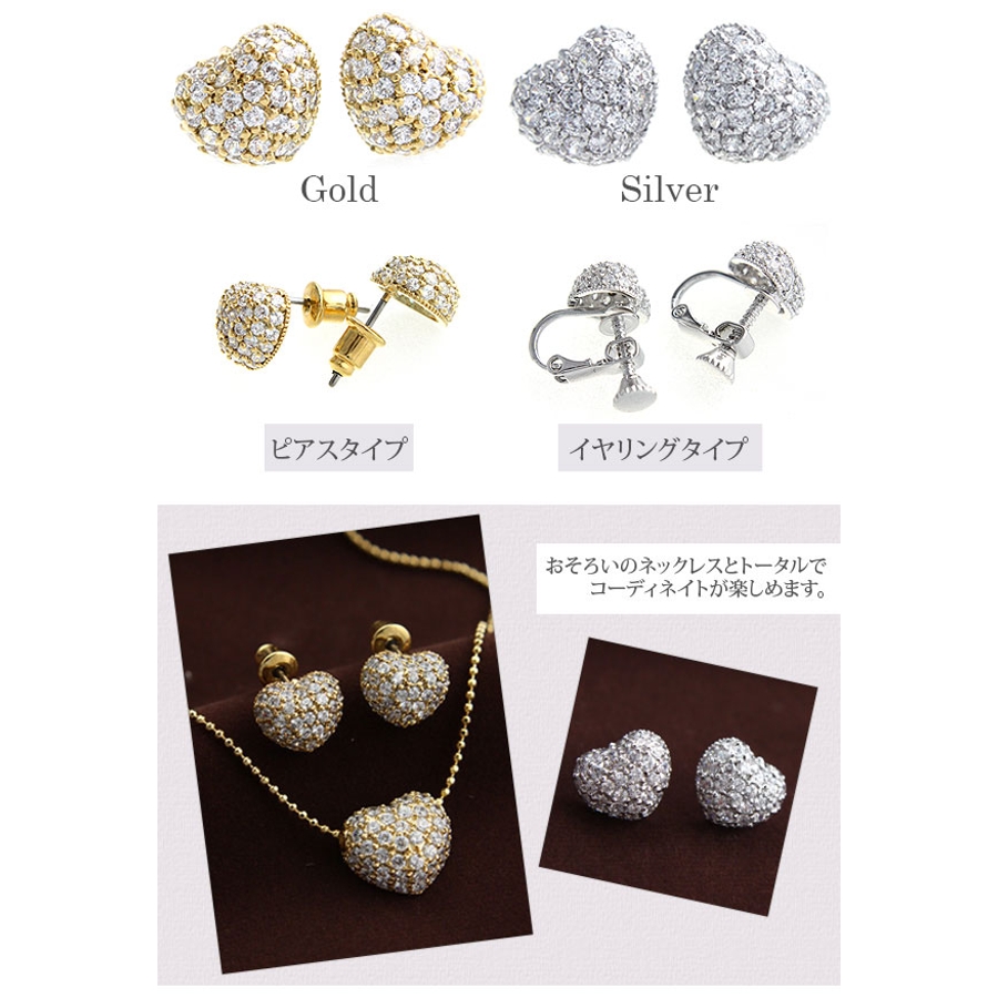 ぷっくりパヴェハートピアス/イヤリング/キュービックジルコニア P2-46