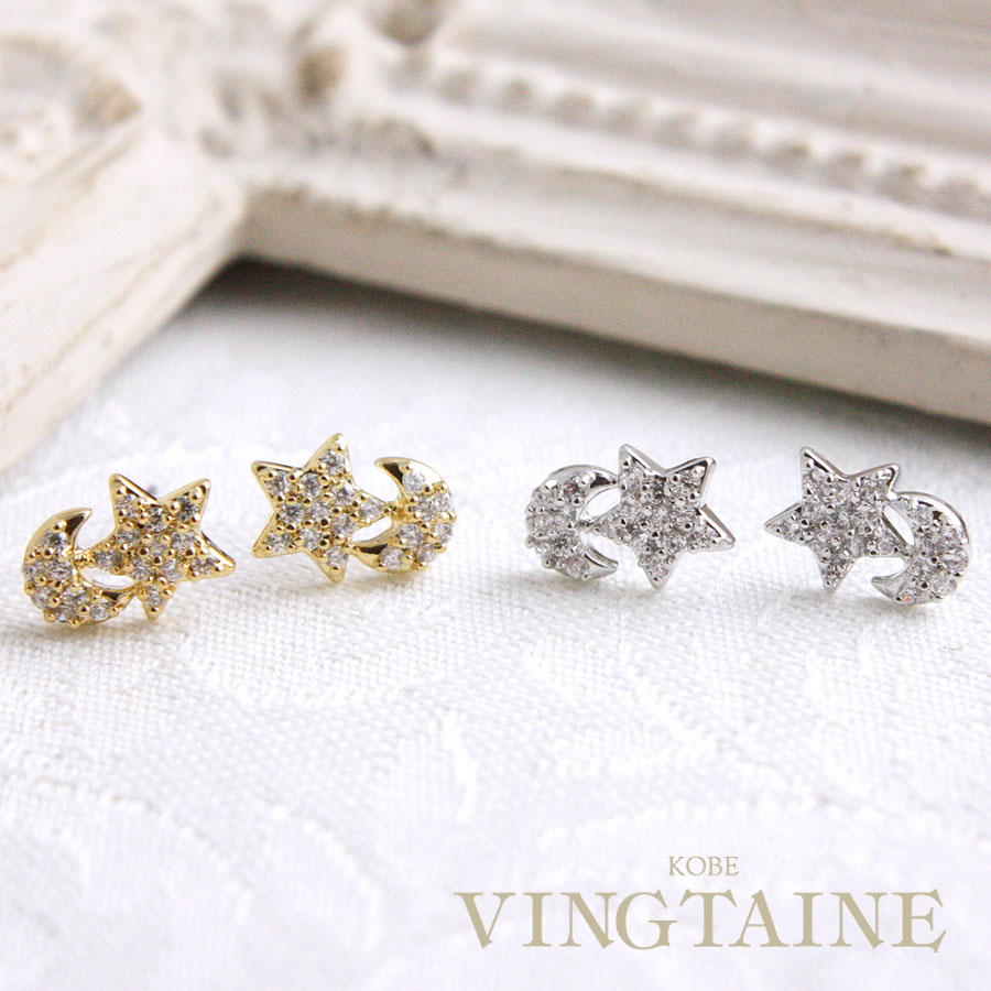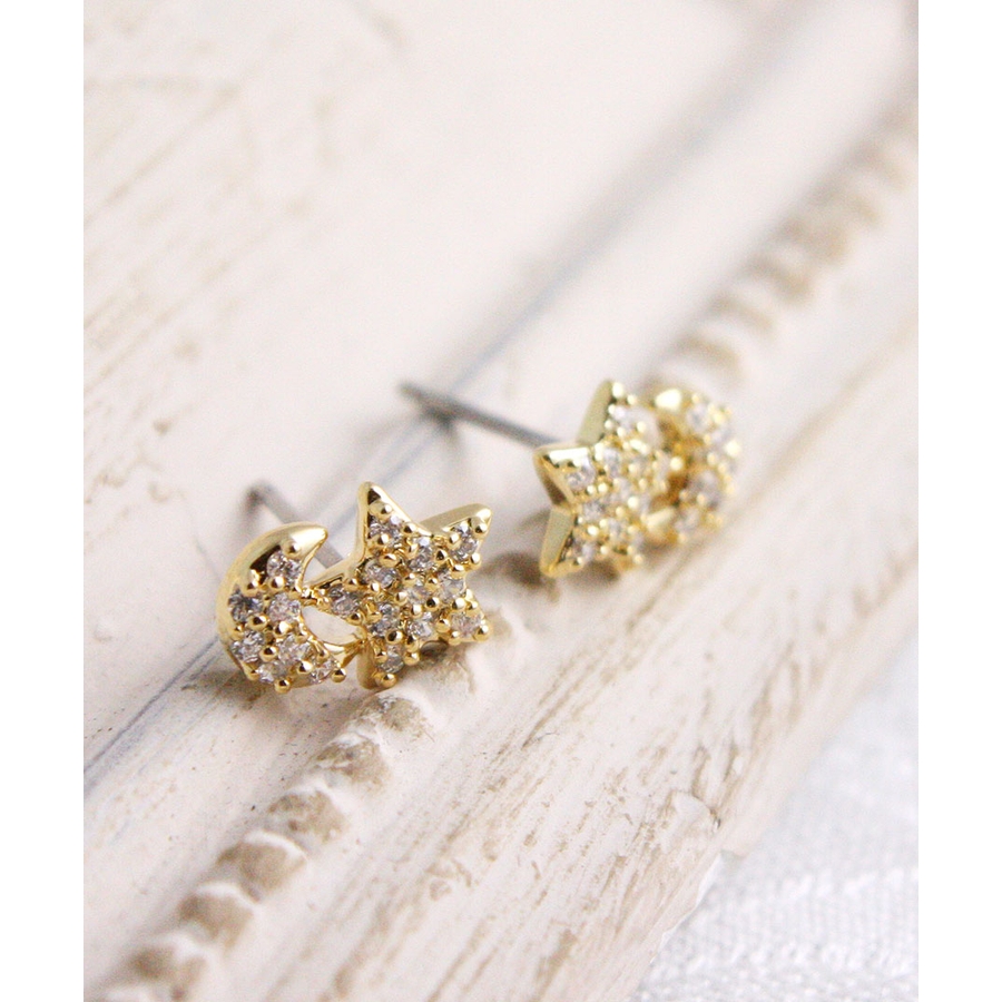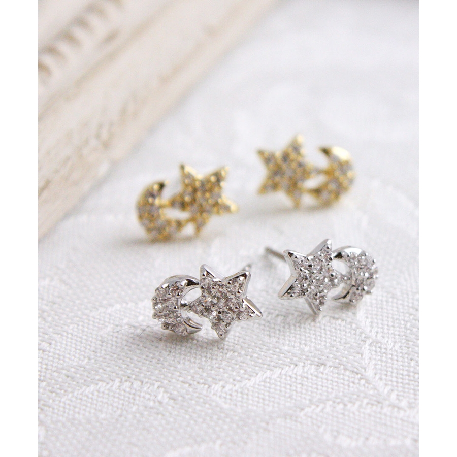 星と月が寄り添う、ロマンティックな雰囲気のピアス。優しさや純粋さを象徴するモチーフは、女性らしさを引き立ててくれます。お守りのように身につけて楽しみたいアイテムです。