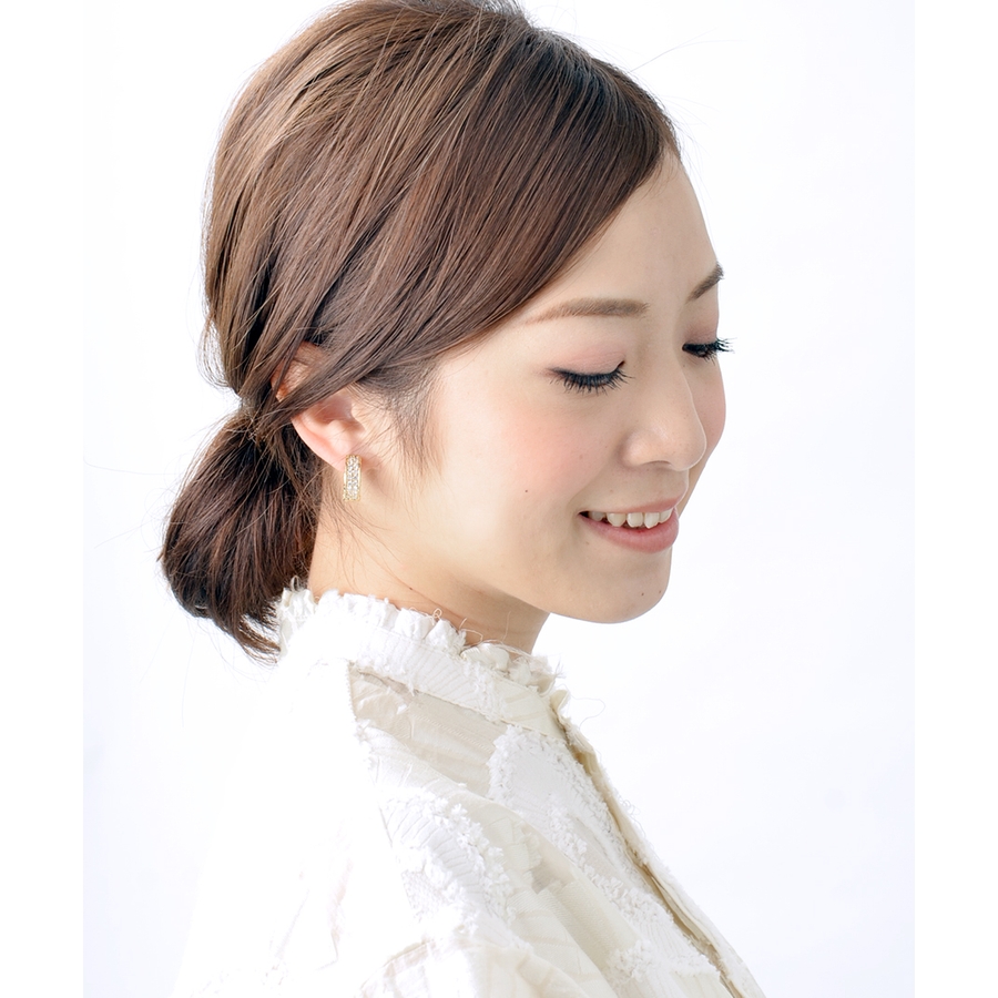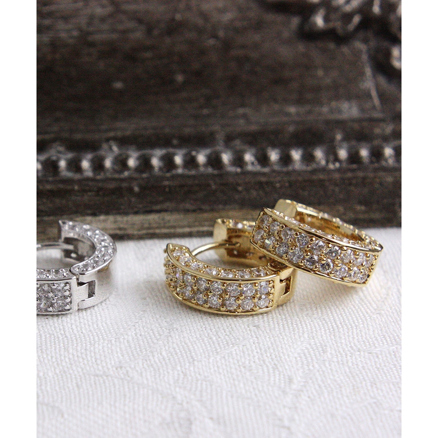 たっぷりと施されたキュービックジルコニアパヴェが耳元で煌き、存在感を放つリングピアス。スタイリッシュなリングのフロントと、両サイドに敷き詰められたキュービックジルコニアがエレガントな印象。女性らしく大人の品格を高めてくれる逸品です。