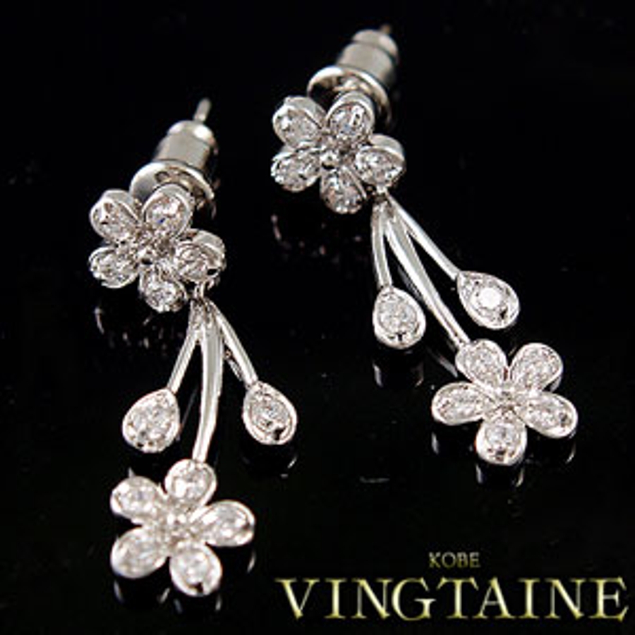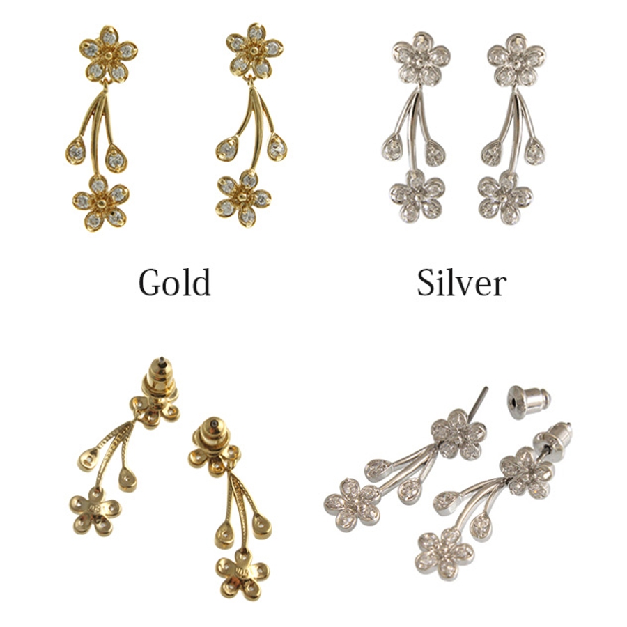 ジルコニアフラワーピアス■ブライダル・パーティーアクセサリー P2-SET2