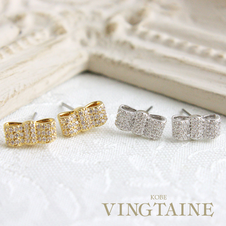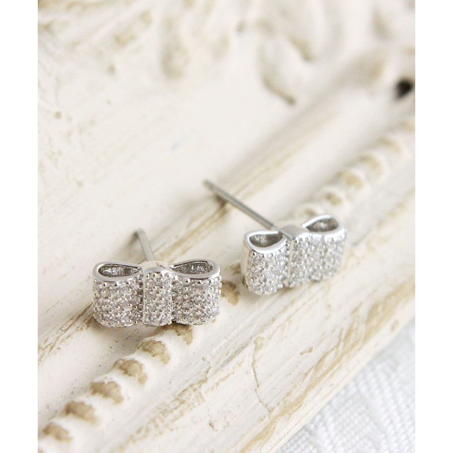 パヴェミニリボンピアス キュービックジルコニアP38 4[アクセサリー