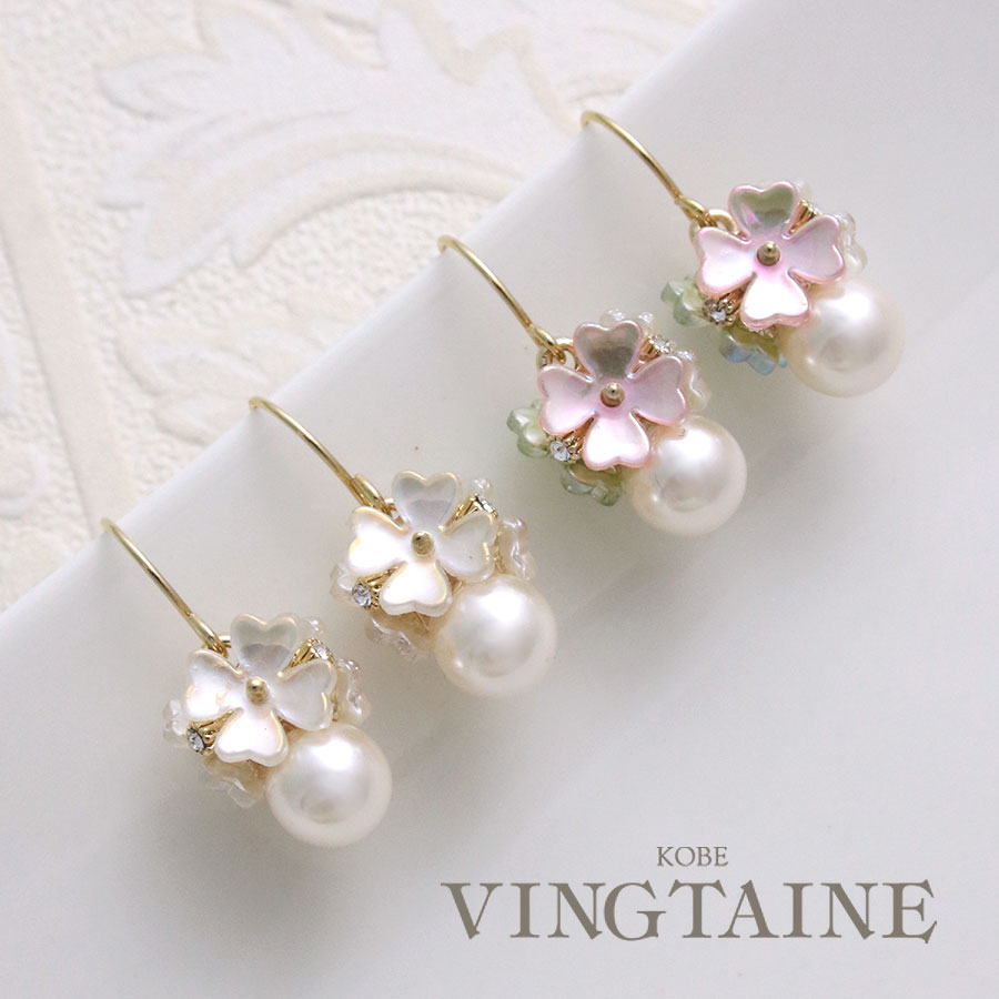 【ピアス】パール&フラワーピアス イヤリング フックピアス