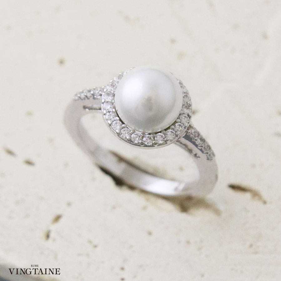 キュービックジルコニア×パールリング 指輪 レディース