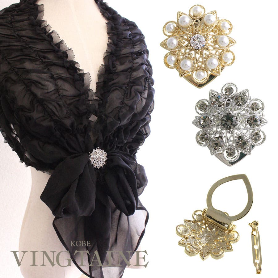 フラワーモチーフスカーフクリップ ストールクリップ ブローチ