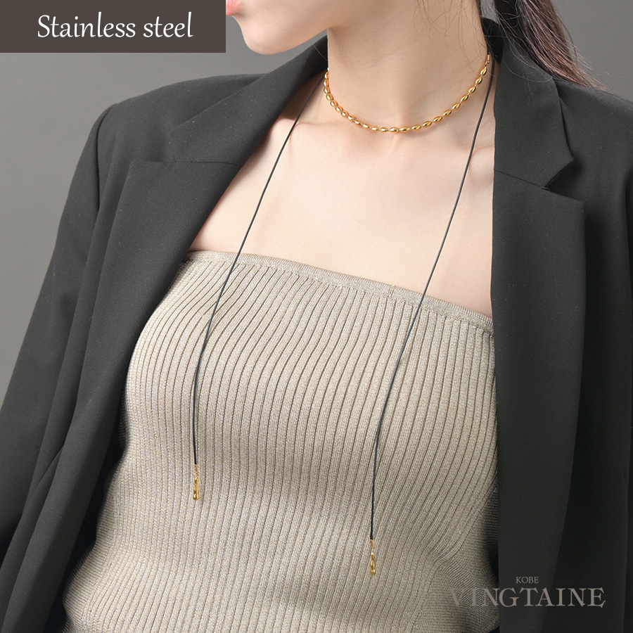 シンプルながらもトレンド感をしっかり押さえた、紐タイプのネックレスが登場。