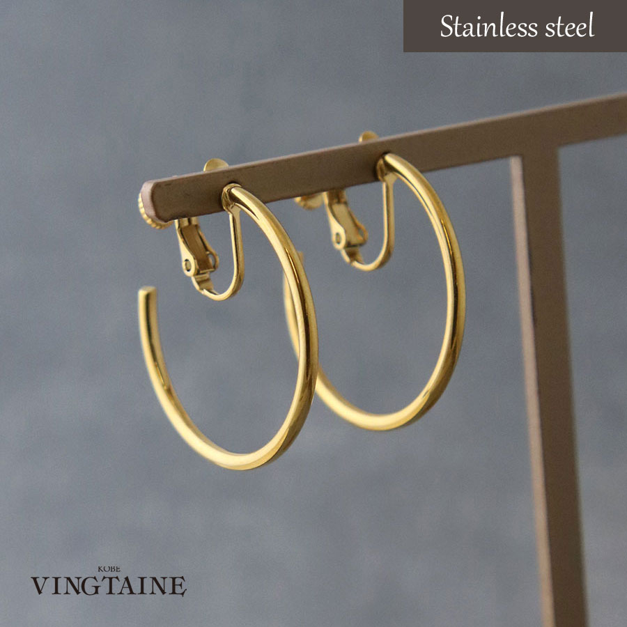 直径約3cmの程よい存在感が魅力。ミニマルで美しいラインが際立つ、ステンレス素材のフープイヤリングです。