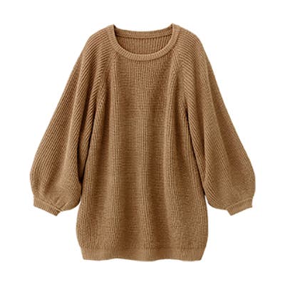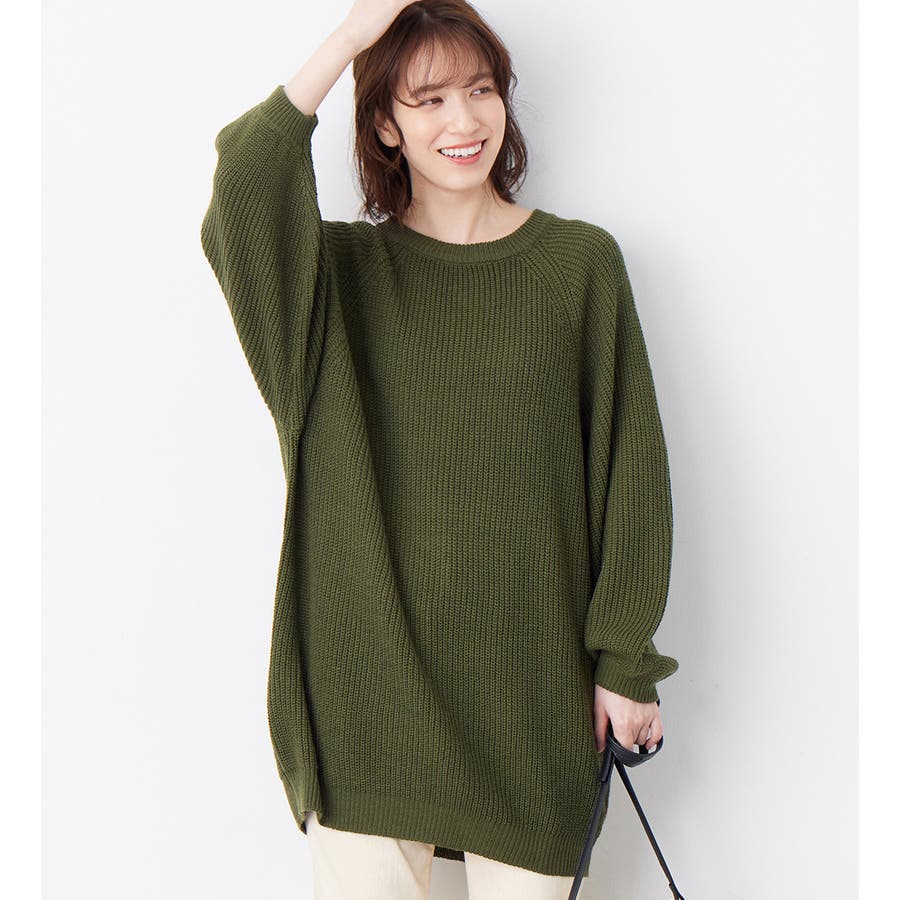 身体をすっぽり覆うビッグシルエットが特徴のゆるニット。