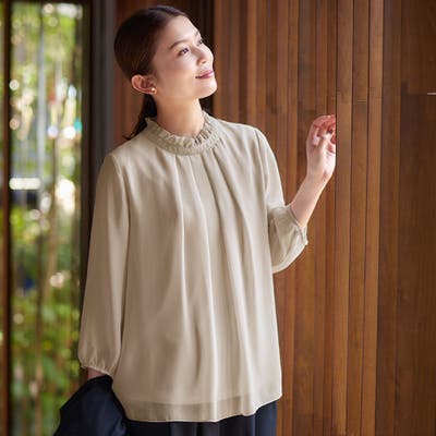 夏場もジャケット着用の仕事をしており、ジャケットの襟汚れ対策に襟があるブラウスを好んで着ているのですが、こちらは襟もガードしてくれますし、7部袖ジャケットからはみ出さない袖丈も気に入りました。色も写真通りで上品です。さん (40代 / 女性 / 身長150~155cm / 体重40kg未満)購入アイテム:サイズ Mカラー トープいつものトップスサイズ:Sサイズ感:ぴったり