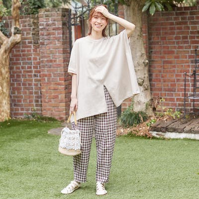 ナチュラル感を演出しつつ、体型カバー。長めの袖なので気になる二の腕も上手に隠してくれます。