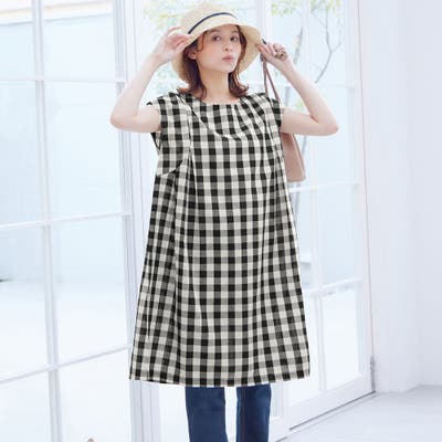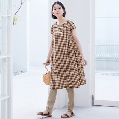 ナチュラルな色味のギンガムチェックが大人可愛いを演出。