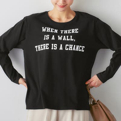 ロゴデザインが大人カジュアルな装いにぴったりのTシャツ。寒い季節に嬉しい、吸湿発熱機能付き◎