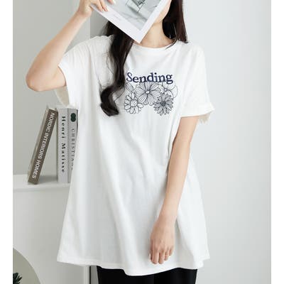 大人の華やかプリントチュニックTシャツ