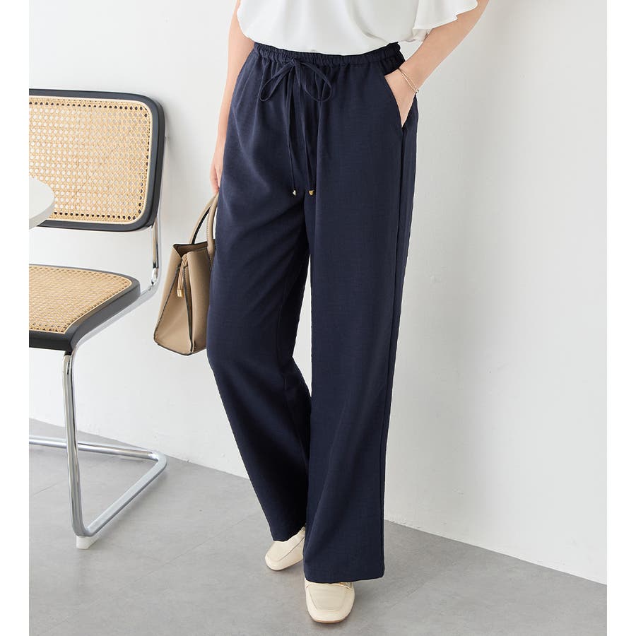 夏の定番、麻調ゆるワイドパンツ。