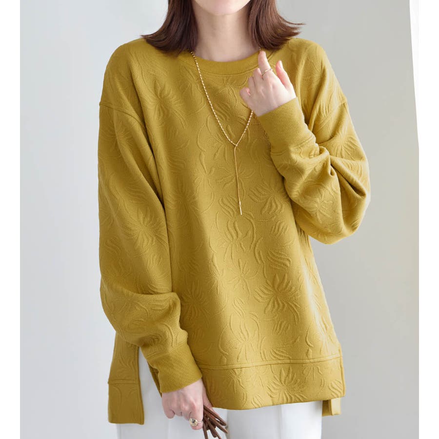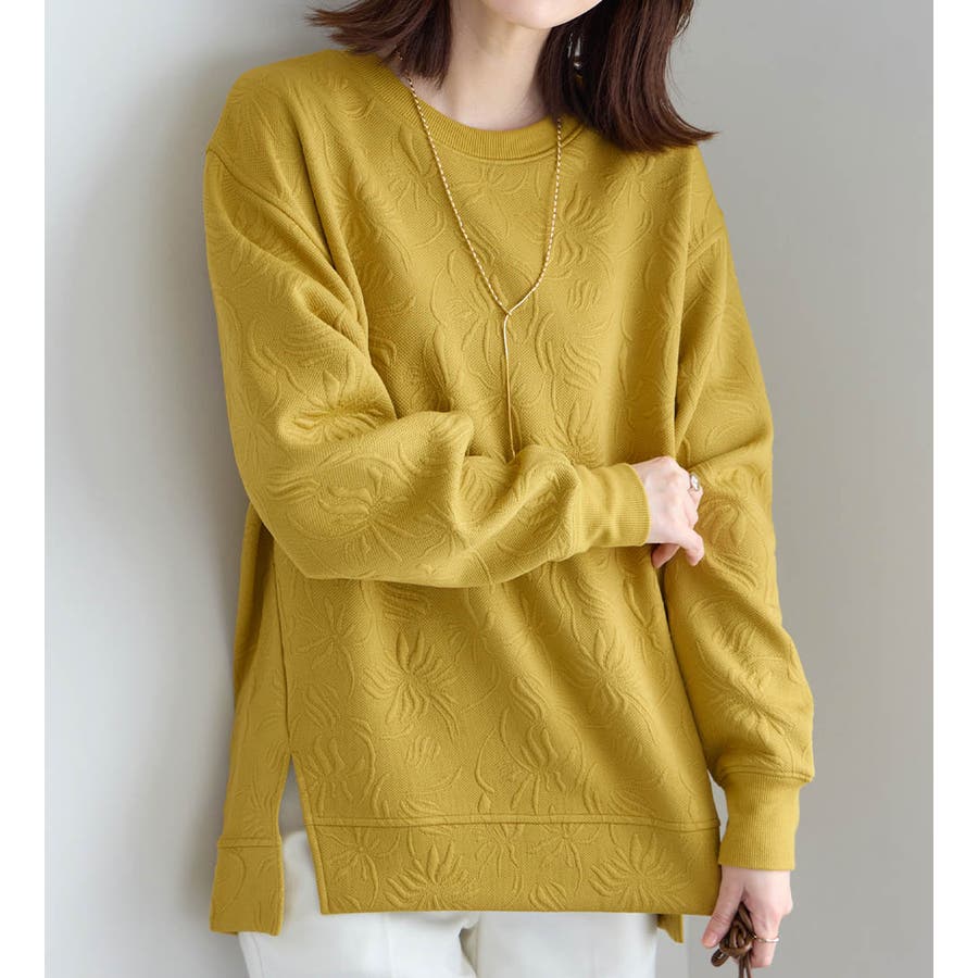 ・着映えを叶える立体的なふくれジャカード:ふっくらと厚みのあるジャカード編で抽象的な花柄を表現、シンプルな着こなしでも存在感を放ちます。