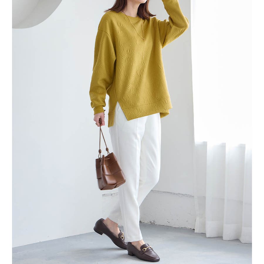 サイドスリットが抜け感をプラスし、こなれた印象を与えます。
