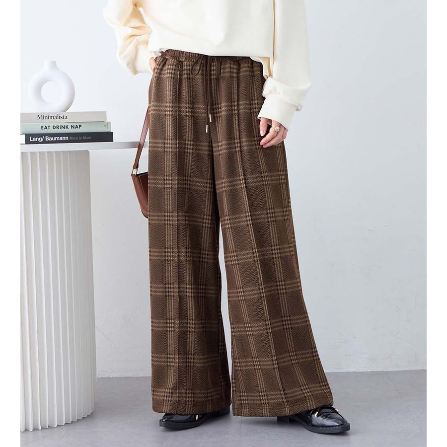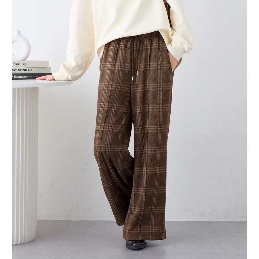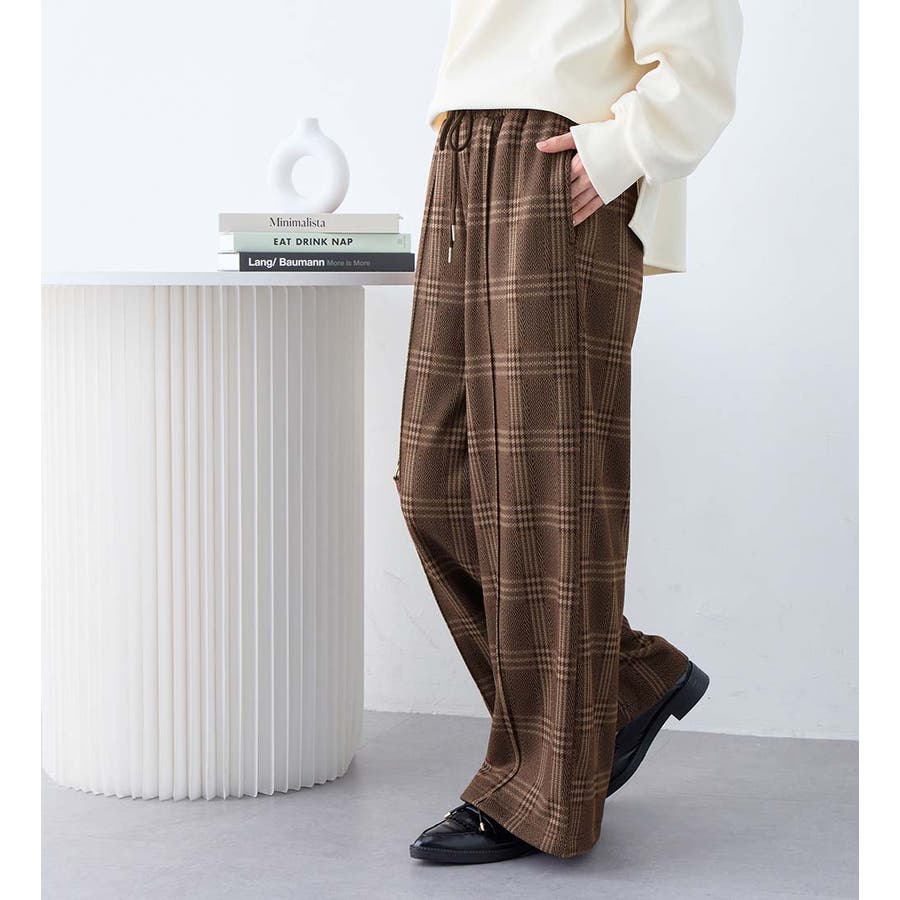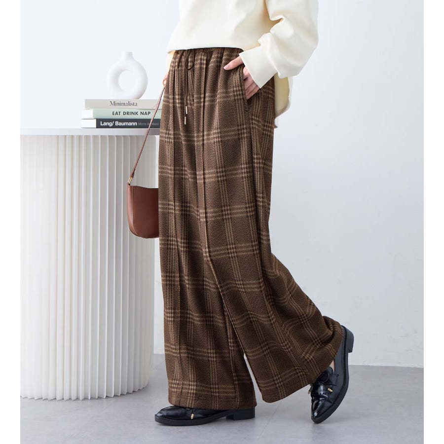 ・ウエスト総ゴムで楽ちんな穿き心地ながら、センターピンタックで綺麗めな印象もプラス。