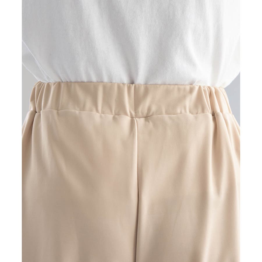 ・ウエストは後ゴム仕様で楽ちんながら、前部分はインベル風のデザインでトップスをインしてもすっきりと決まります。