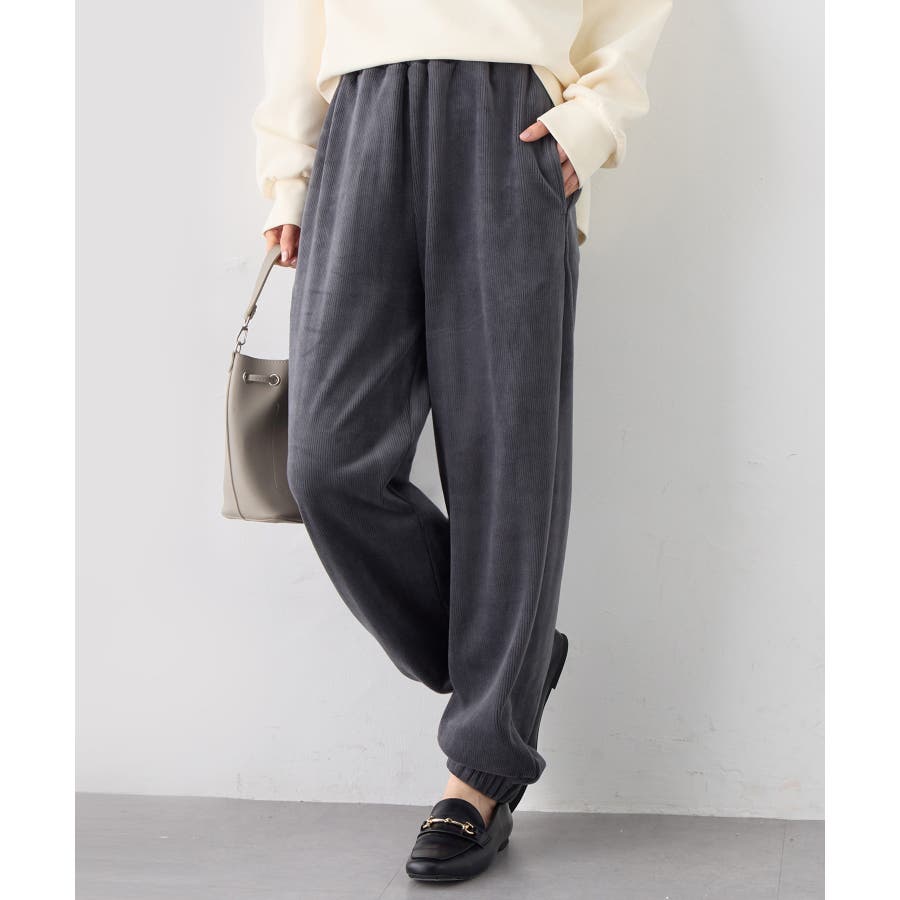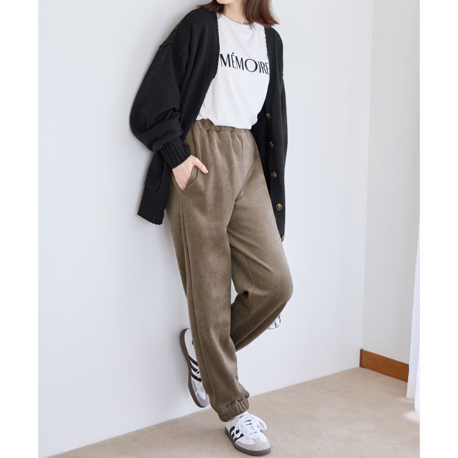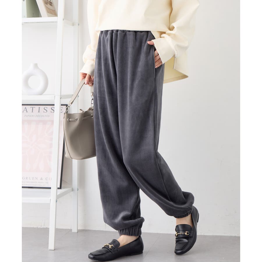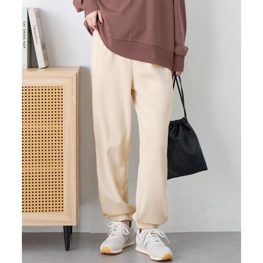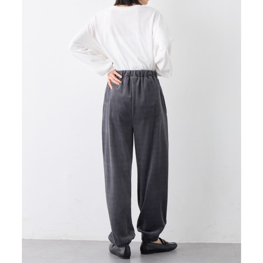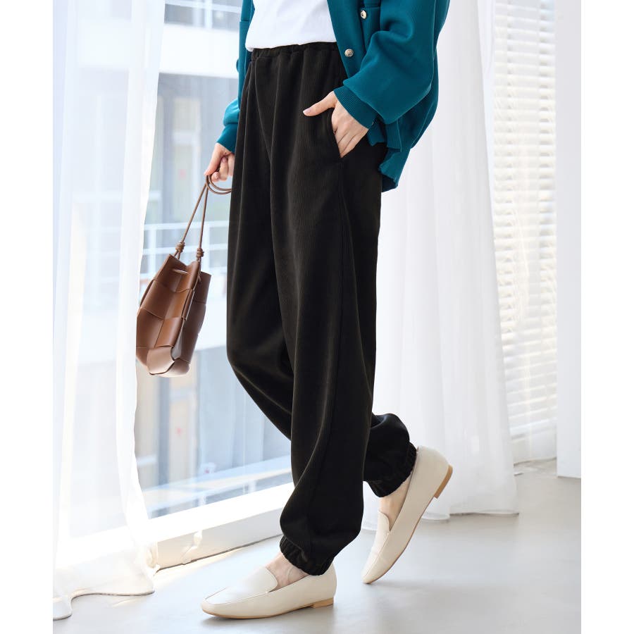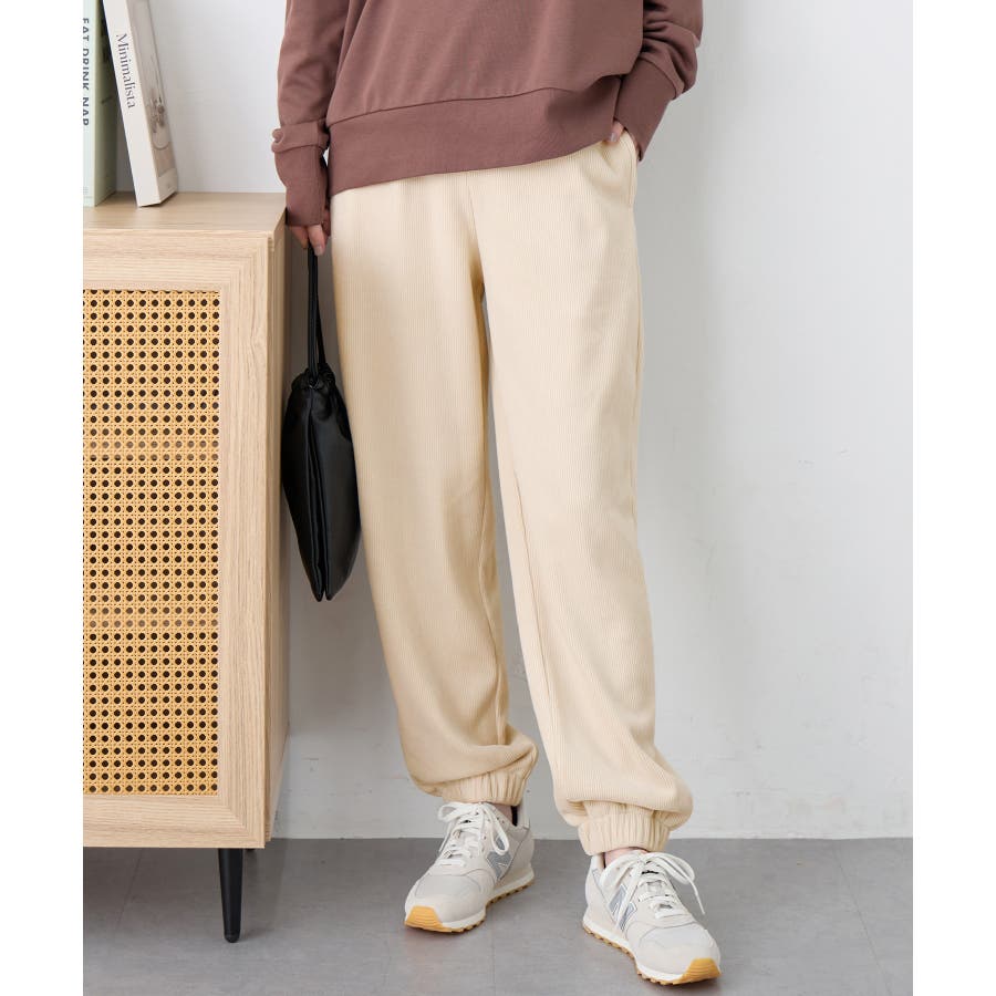 ・ゆったりとしたシルエットで楽ちんな穿き心地ながら、リブの縦ラインですっきりとした印象に。