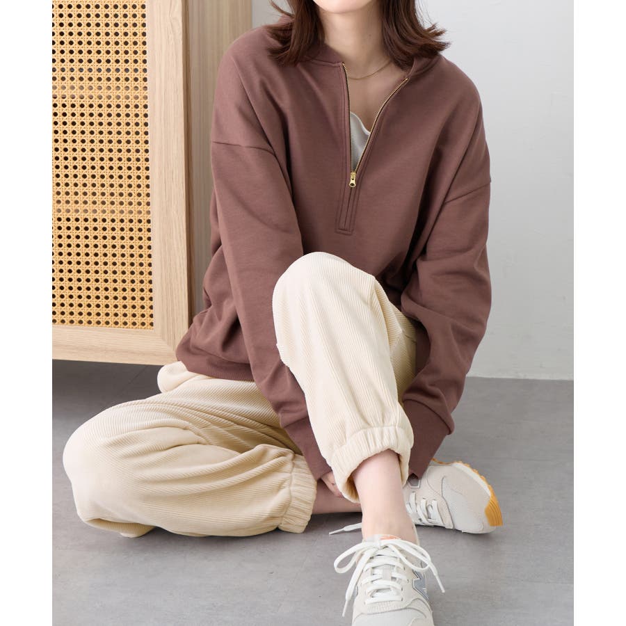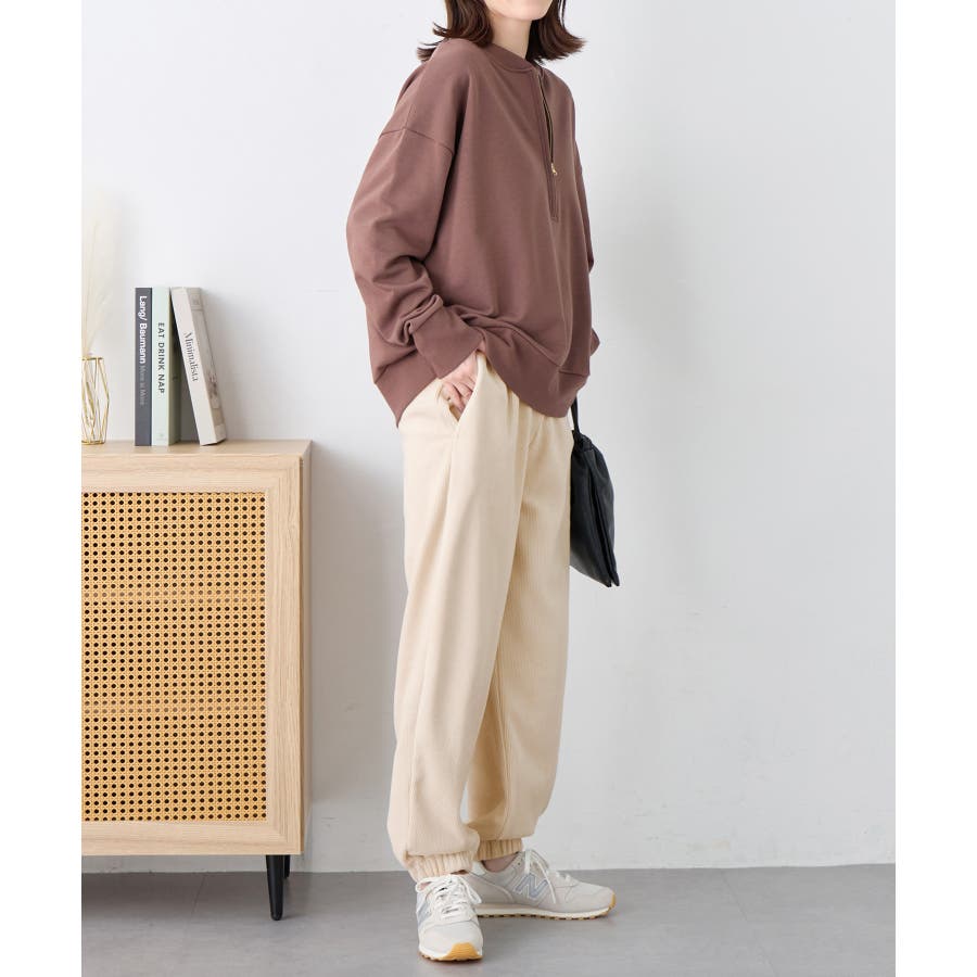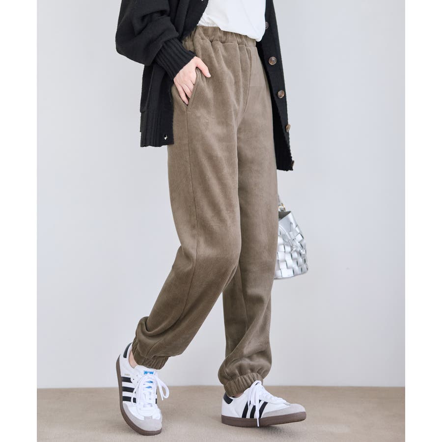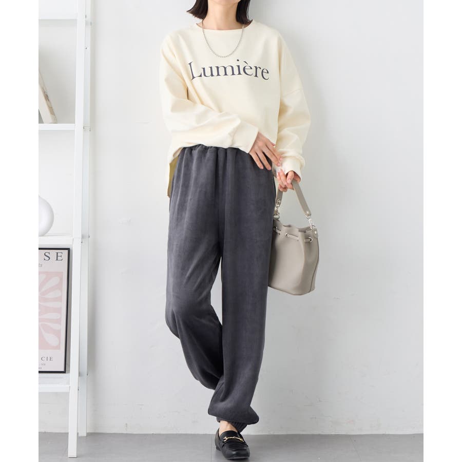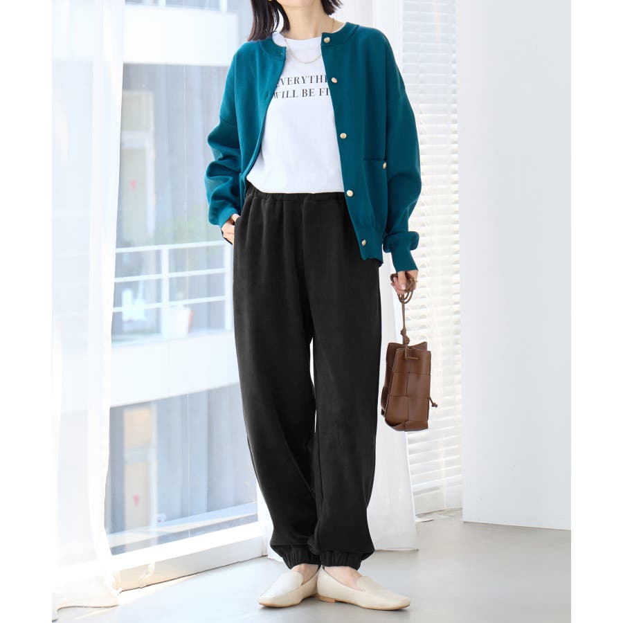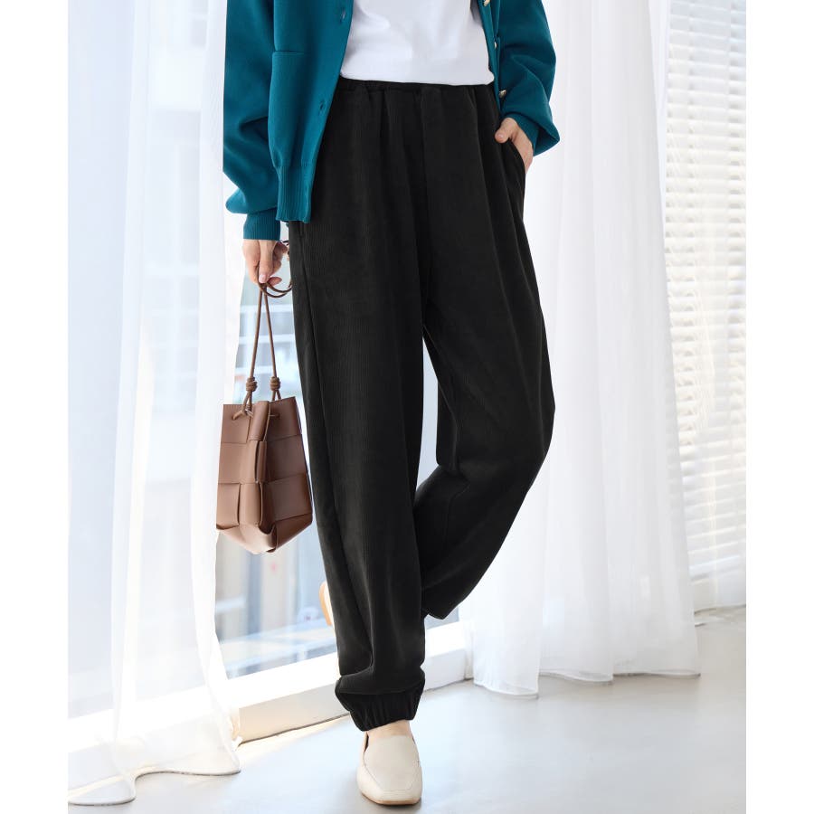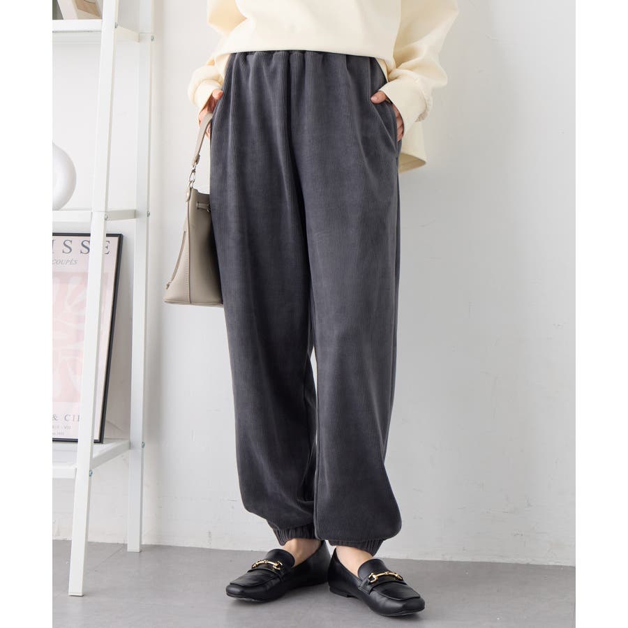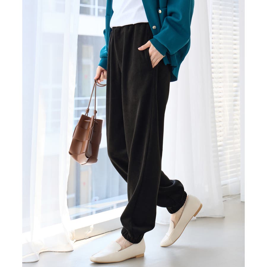 ・ゆったりとしたシルエットで楽ちんな穿き心地ながら、リブの縦ラインですっきりとした印象に。